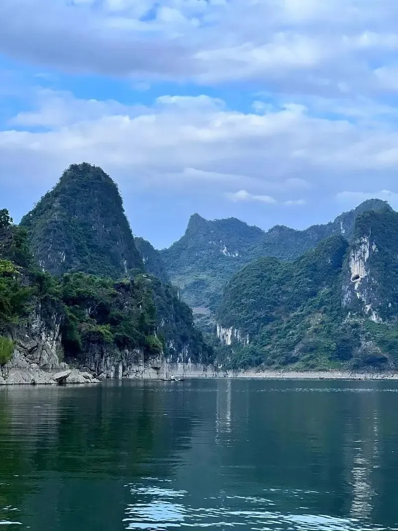 你走在三里洋渡的河边,看着那些喀斯特地貌的山峰倒映在水里,你会觉得时间在这里是粘稠的。