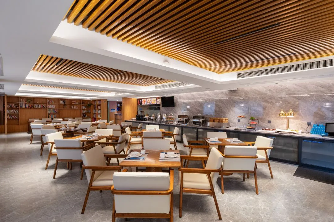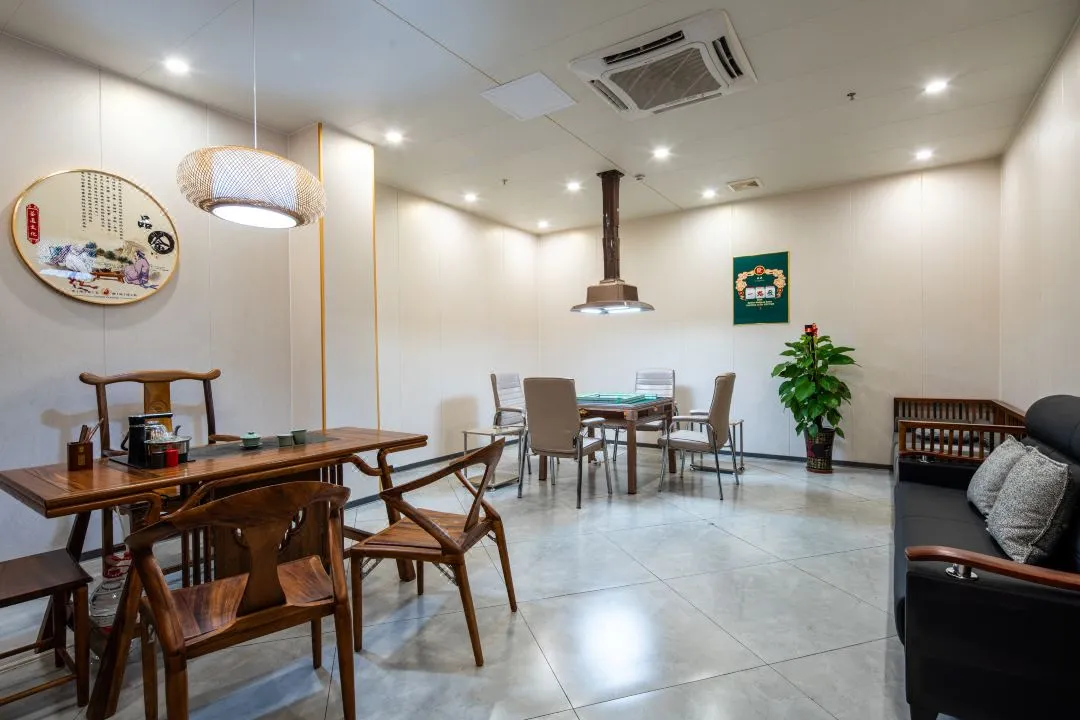 基地内部设有以粤菜为主的中式餐厅,可承办各类宴会、餐叙,同时经营早、中、晚茶;酒店内设520主题音乐烤吧和老友汇茶馆;同时设有小型致书吧,1500余册优选全龄图书可供阅读。