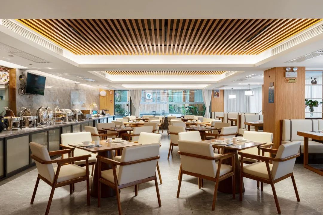 这是一家以度假、休闲、旅游、养生为主题,同时能够满足商务/公务接待、会议、培训、团建活动需求,服务广大市民的花园式基地,设计按照新中式的风格设计,给客人清新一亮的归属感与体验感;共有客房一百余间。
