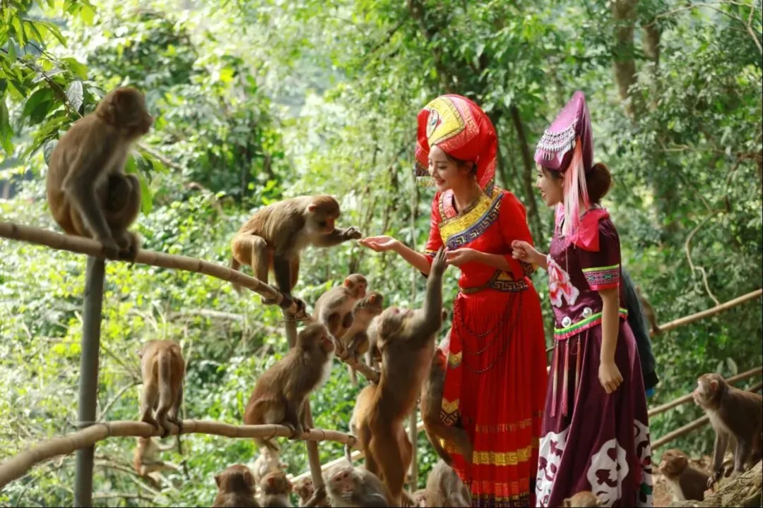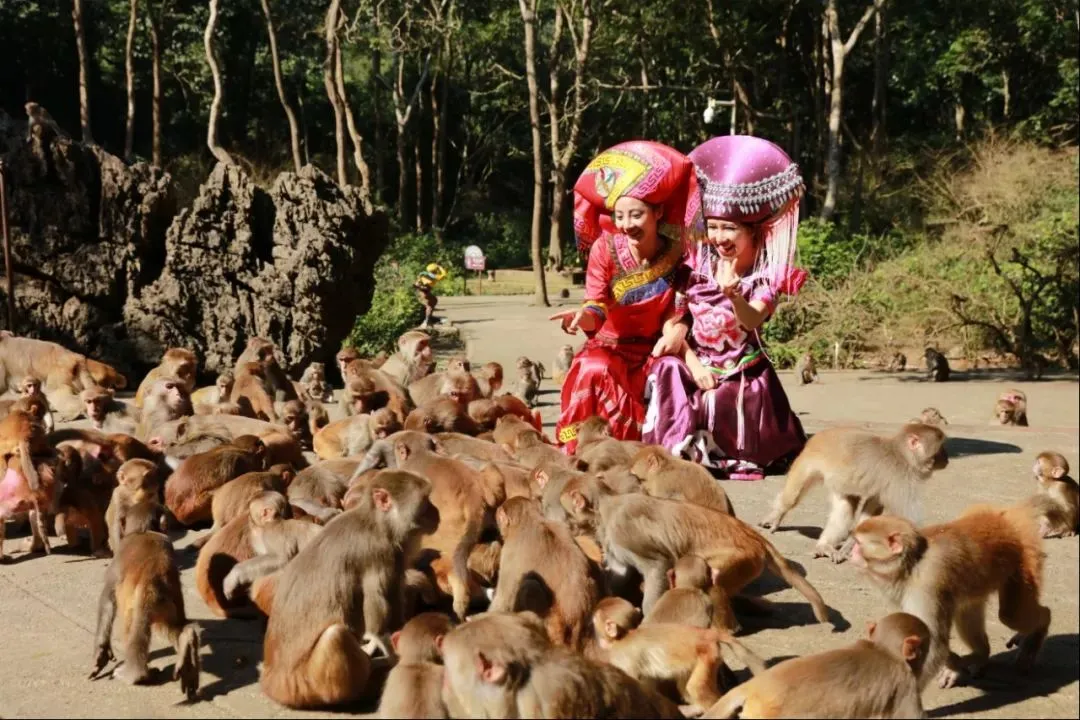 早上08点00分公园路5号广西体育场集中,08点420分民族大道沃顿大酒店门口集中贵单位集中,乘旅游空调车(1个半小时)前往天然氧吧——龙虎山景区,抵达景区后在景区的讲解员带领下,走进大自然氧吧探访人类的近亲——可爱的猕猴,领略龙虎山奇特的石山地区药用植物天堂,呼吸清新空气(感受人与自然的完美和谐。游览龙门寨、龙山寨、白花寨等猴点后,还可前往“金龙寨”感受别样农家风情。从金龙寨出来后乘竹排(景区内小景点,自理60元,可不参加)沿江观赏两岸江景,感受“船在画中走,人在画中游”的无穷意境。竹排抵达猴群海军部队——水寨,欣赏猕猴“海底捞月”等绝活表演。下午16点集中乘车返回南宁,结束行程