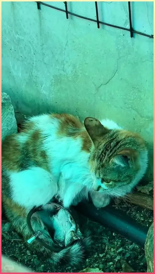 我是昨天下午去帮另一只猫做绝育回访的时候,在那栋旧楼的墙角看到它的.,一.只橘白花的猫,蹲在那堆满了枯枝烂叶和塑料垃圾的角落里,安静得像一块石头,那一刻我停下来,就看到它在翻那些垃圾,我知道它在找吃的。