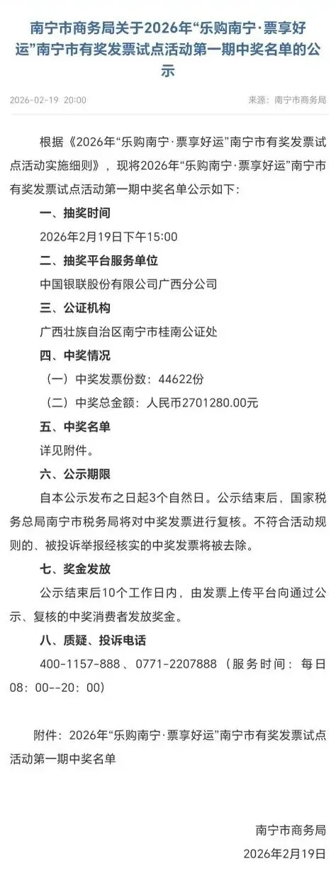 现在有一个抢先预览的方法,也就是登录南宁市商务局的官方网站,下载今晚发布的“中奖公示表格”。可以看到自己的中奖结果,只要将自己上传成功的发票编码在 Excel 表格里面查找,确认对应的奖项即可。