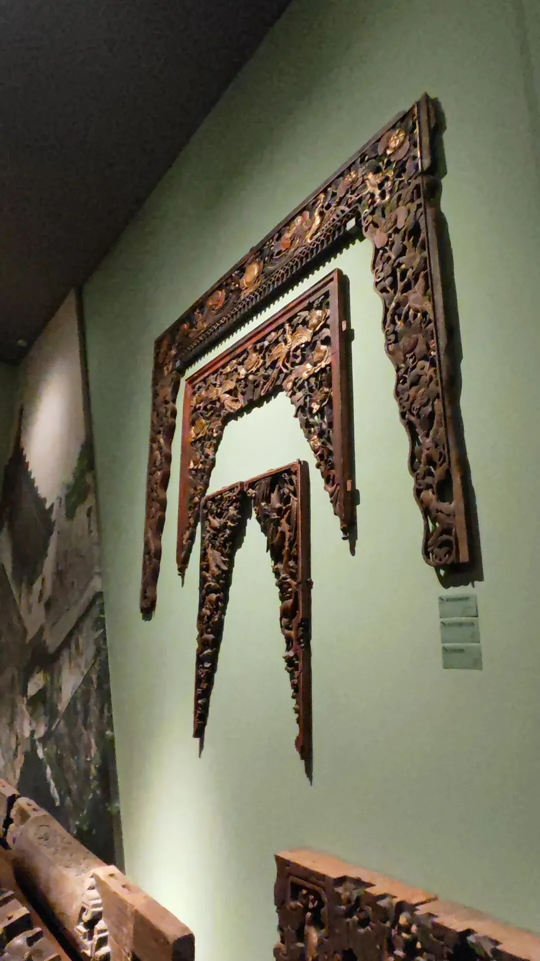 博物馆收藏的室内居家木制品(铁梨木),木头本身就古朴粗狂,雕刻更是精美无比,雕工精湛,各种图案以及人物雕塑都栩栩如生。在这些木雕上,我又看到了广东陈家祠雕塑的影子,因为我家祖上就是内迁客家人,我们的祖坟墓碑上也有类似这样的人物雕塑,看着让人倍感亲切。