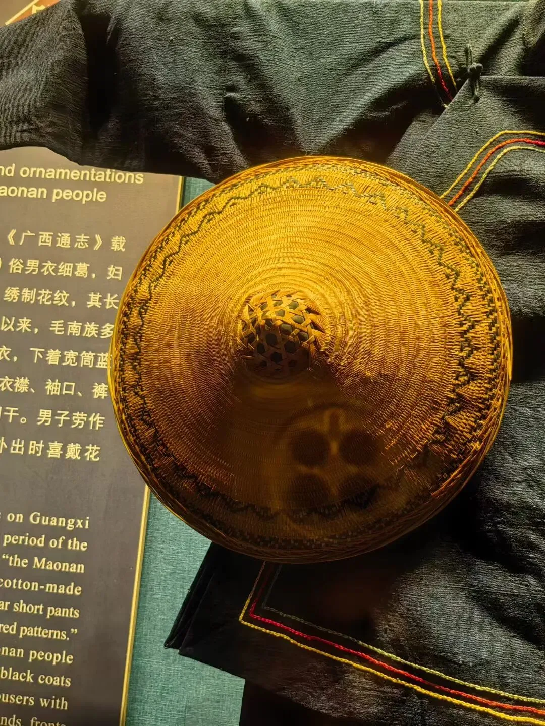 比如那个“亮布灼灼”棉布料,我们看起来就是一块黑布,其实它在有光线的条件下就非常亮。讲解员说棉麻织出来的东西不会亮,但这种布是用鸡蛋液加上黄豆酱,把布放进去反复捶打、晾晒,之后才能得到这样的亮布。想想看,在古代,这成本得有多高啊?