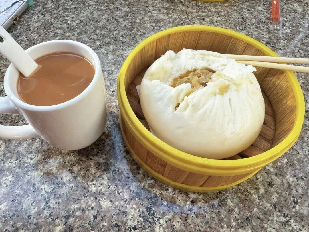 最后,我们只能每人点了一杯老爸茶,一个馒头,就这,还足足等了十几分钟才端上来。