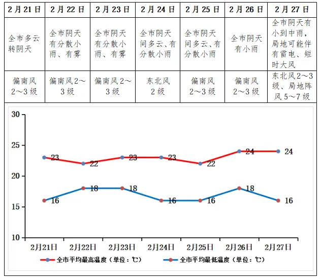22-23日(初七至初八)全市有分散小雨和雾能见度较低,道路湿滑注意防范对假期返程的不利影响