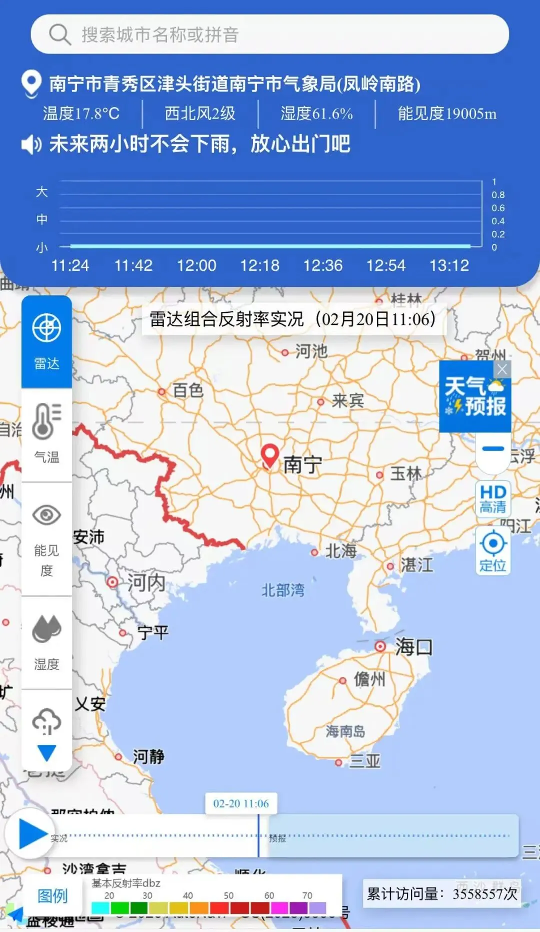 更多实时天气信息可从南宁气象公众号中的“雨讯精灵”查询随时掌握降雨、降温和大雾情况让返程路上多一份安心