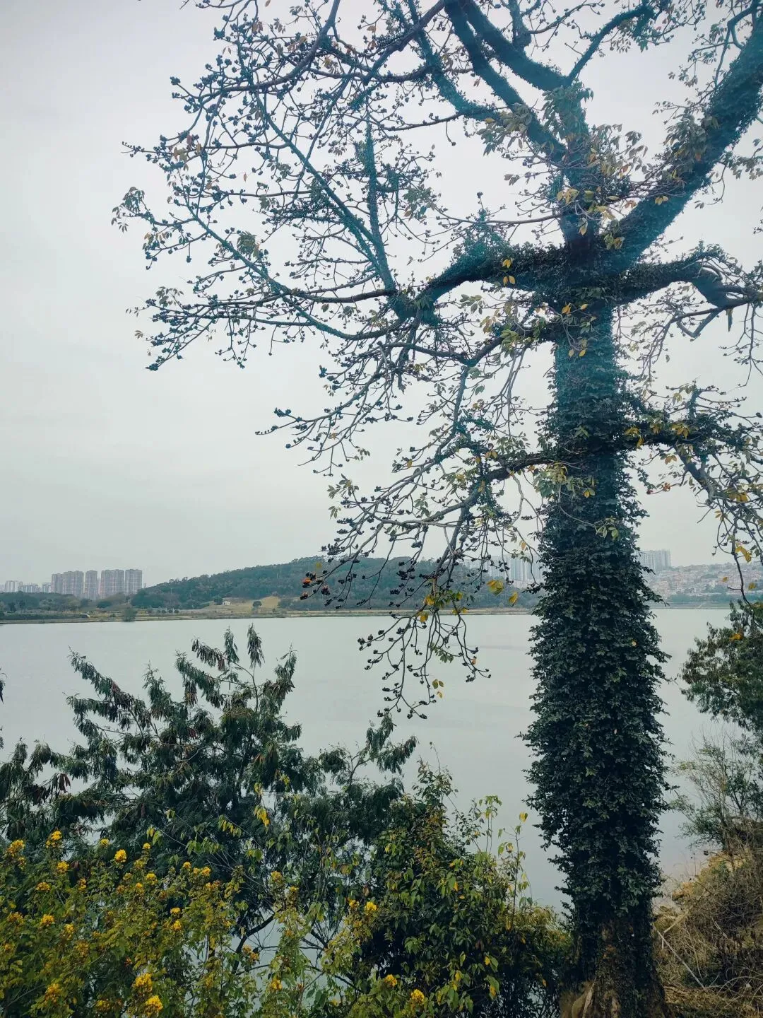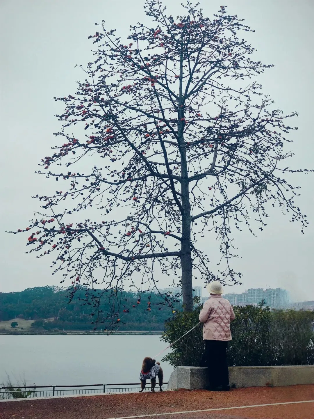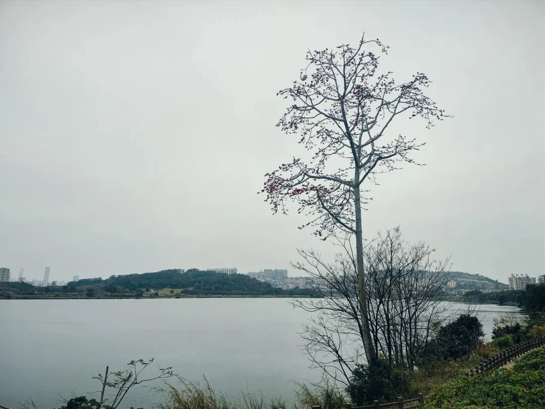 岸边生长有高度达三四十米的木棉树,春节前后为花期。