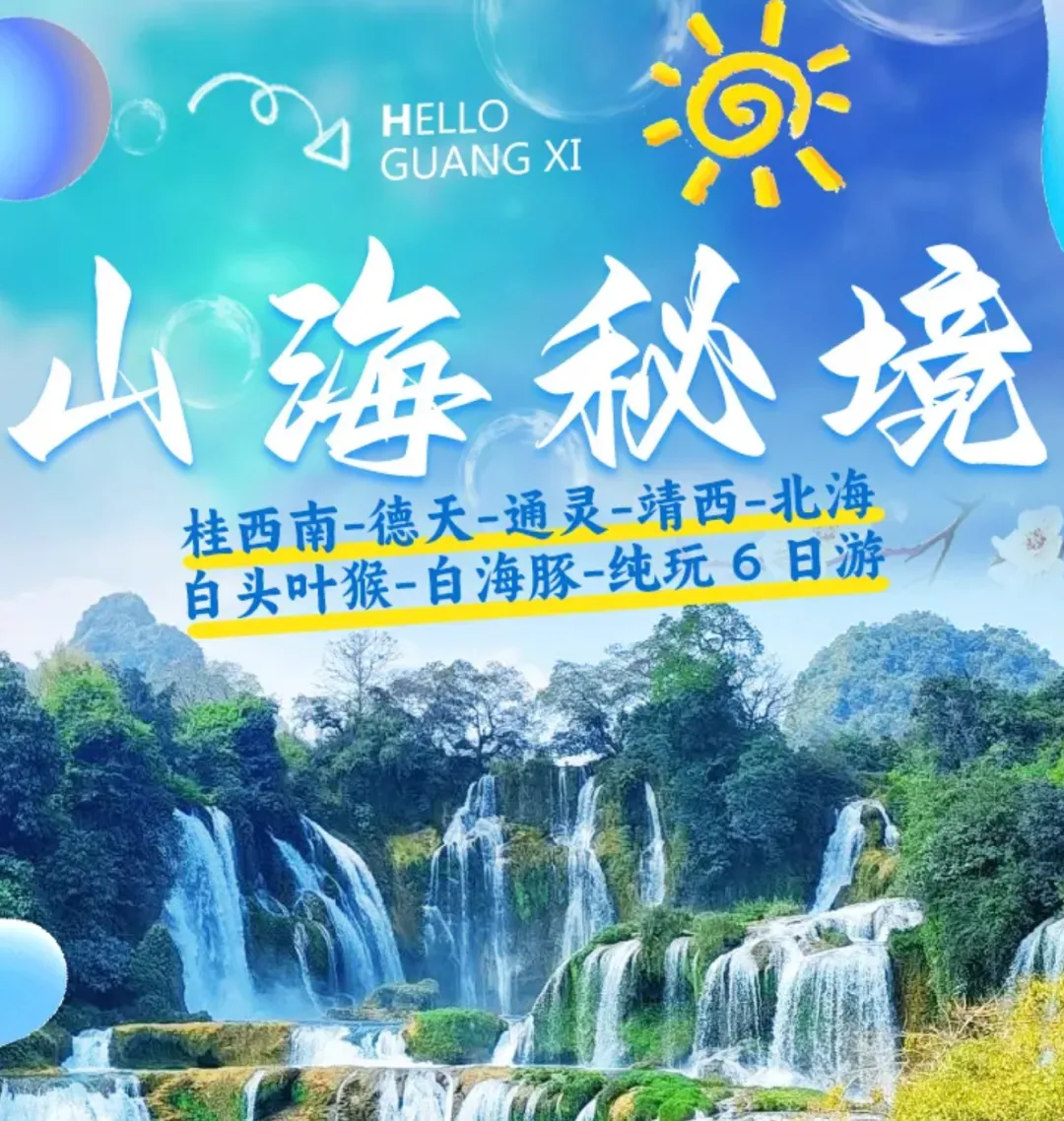 【景点门票】开营活动+通灵峡谷(含景交)+旧州景区(含骑行)+鹅泉景区+德天瀑布(含景交)+白头叶猴+三娘湾(含船票)+北海赶海+结营活动;