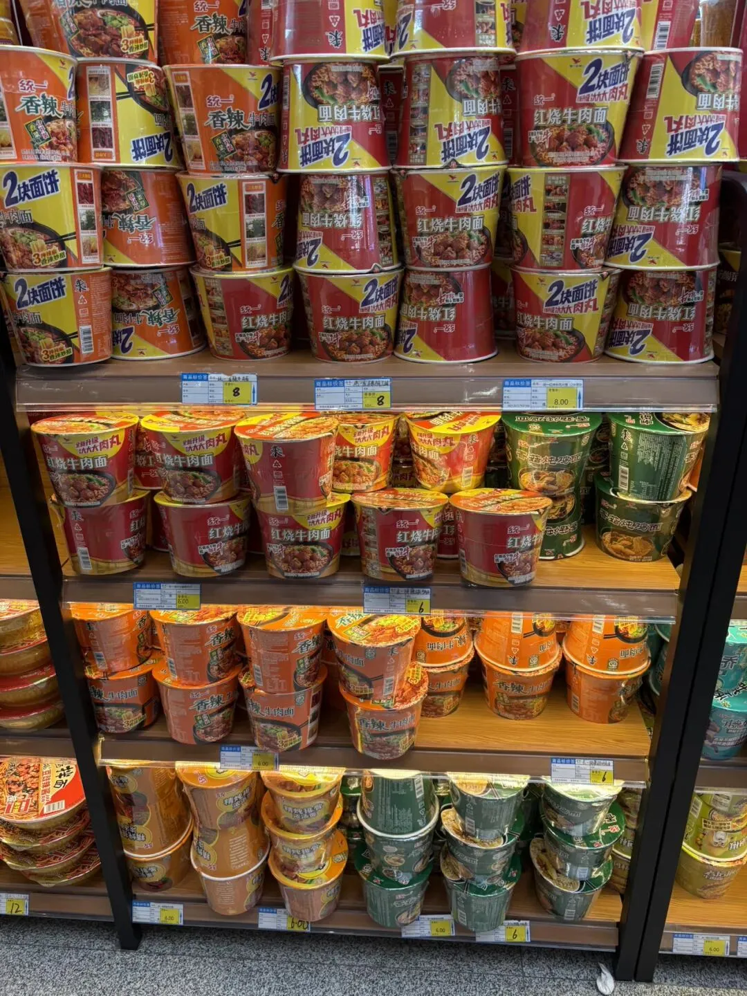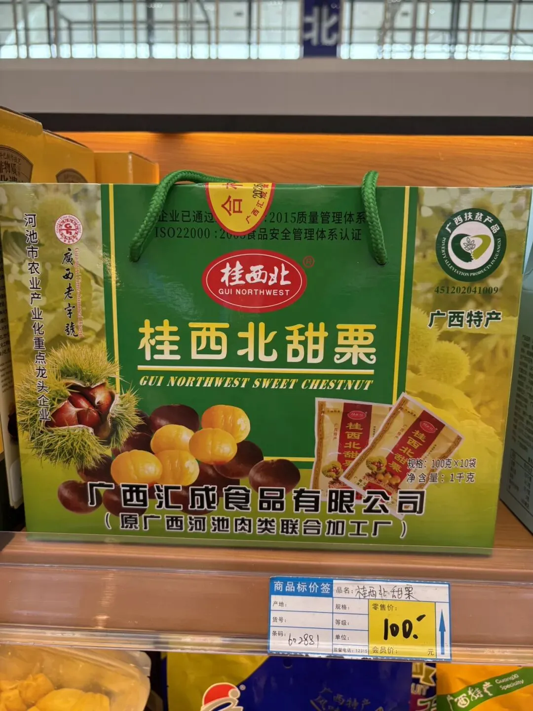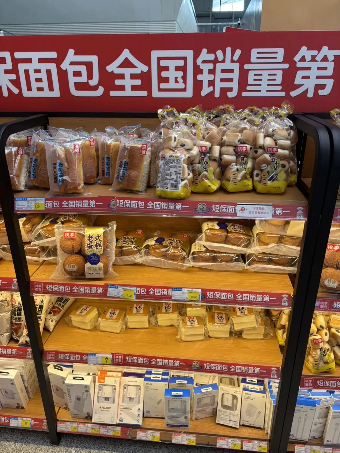 到了南宁东高铁站,最边上的两个候车点是我们这趟车的等候区,旁边就是小卖部。我进去逛了一下,发现面包和方便面种类都挺多,价格略微贵点跟北海银滩小卖部价格差不多。早知道就来这里买了,方便面和面包都挺占地方的,提了一路大箱小包还过安检挺麻烦。小卖部入口还有卖烤肠的,6元一根,胡椒味的。想到一天三顿都要在火车上解决,我也吃了一根补充点肉食,没什么味道感觉盐放少了。小卖部还卖很多广西特产,买的乘客还挺多。以前在武汉高铁站和北京西站小卖部没看到卖这么多种面包和方便面的,一般都是各种零食和饮料以及特产。