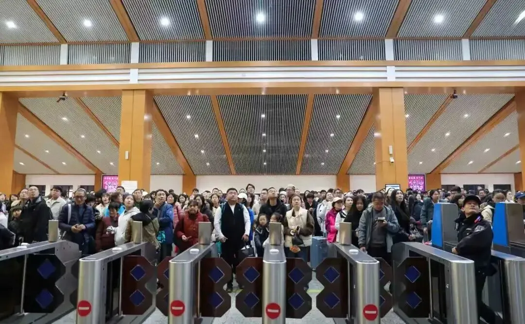 阳朔站,旅客排队等待检票进站。张楗桦 摄