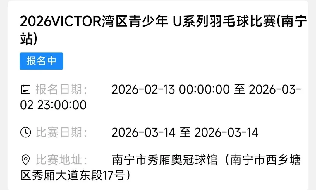2026VICTOR湾区青少年U系列羽毛球比赛(南宁站)