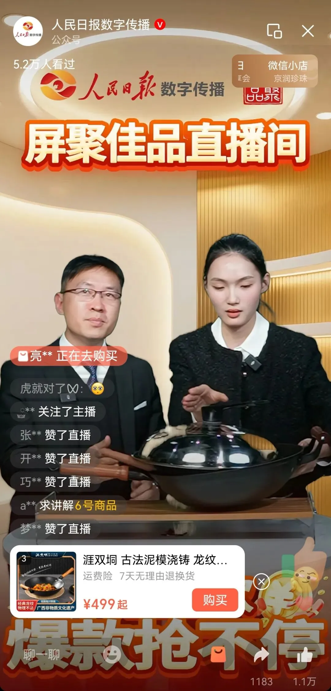 作为人民日报数字传播屏聚佳品直播间推荐品牌、新华网好物甄选直播间推荐品牌,涯双垌陆川铁锅凭借正宗非遗工艺、健康无涂层的产品实力,斩获权威媒体认可,成为国民餐桌的放心之选。
