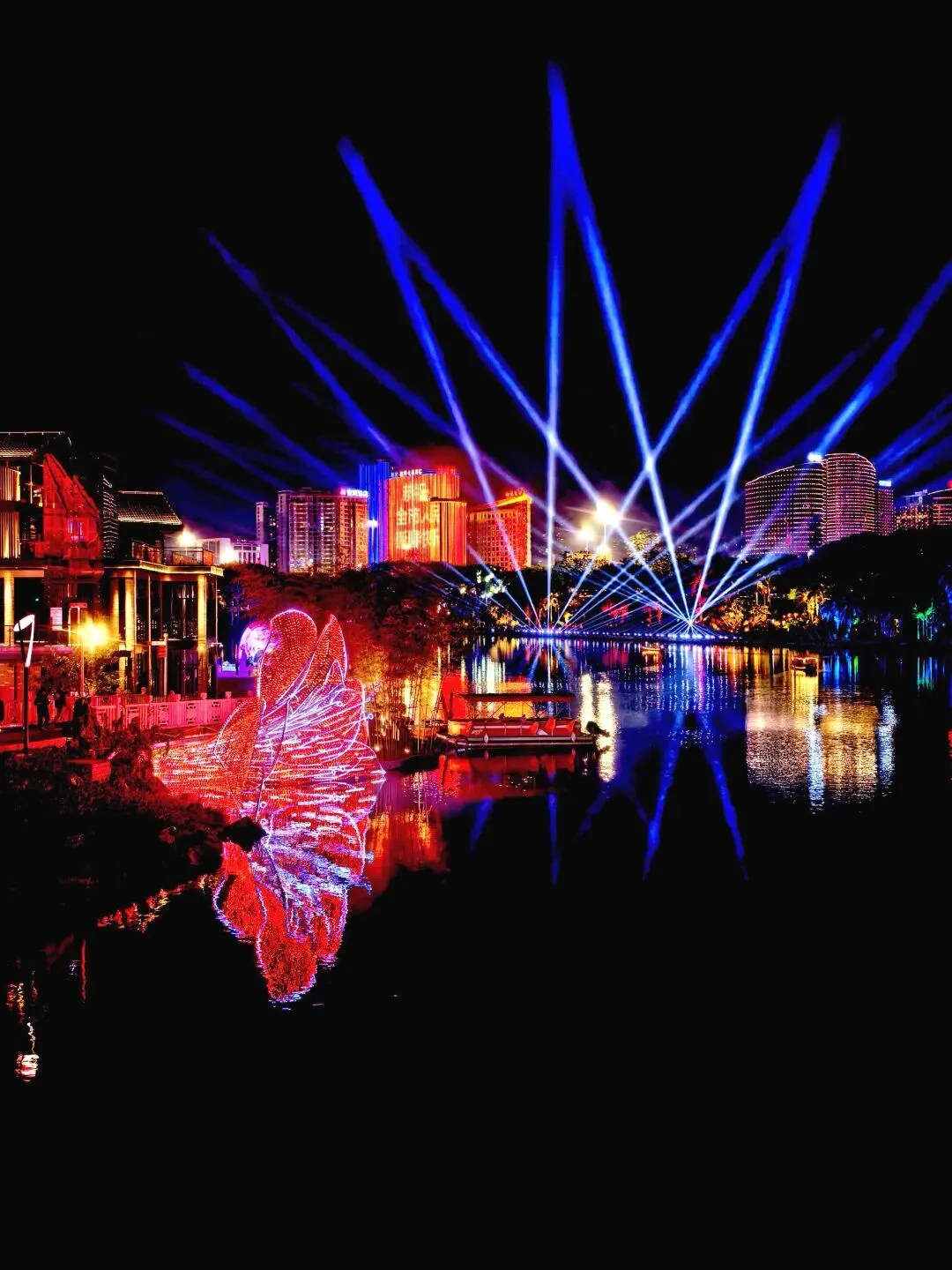难怪有人说:“白天的民歌湖是水上市集,夜晚的民歌湖是光影盛宴。”
