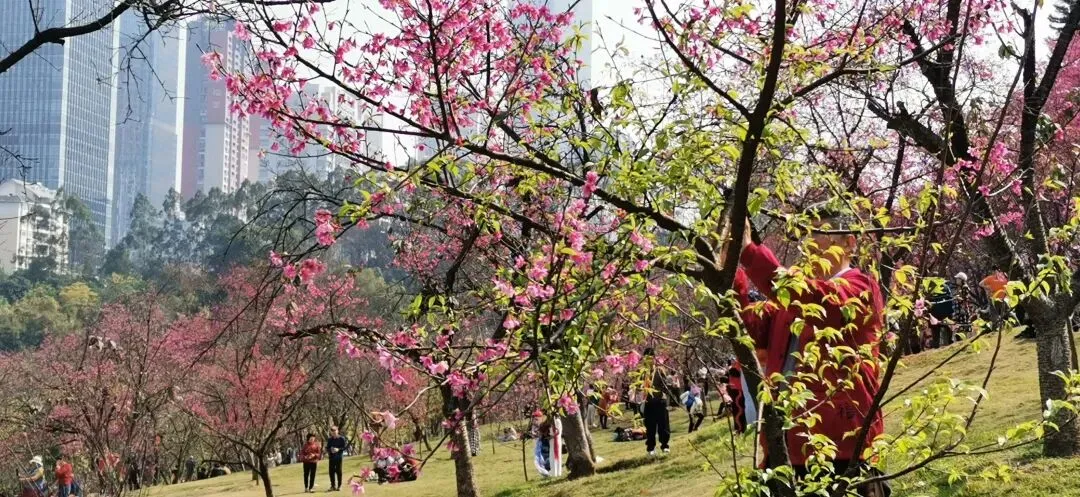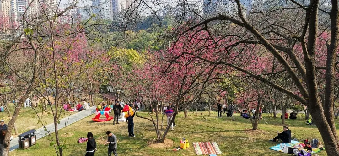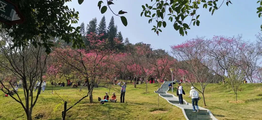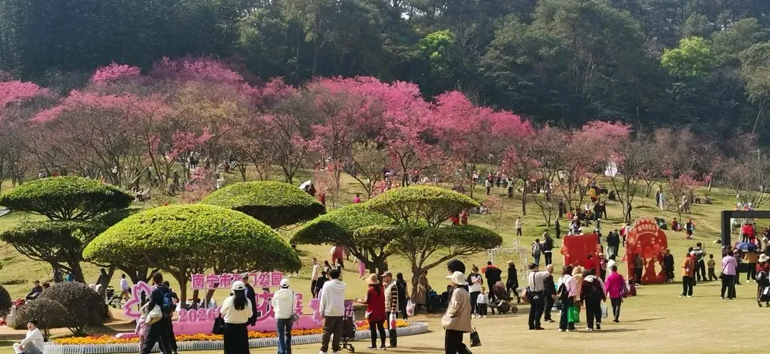 广西南宁,大年初五的石门森林公园,樱花已经盛开了,好多人来拍照打卡!