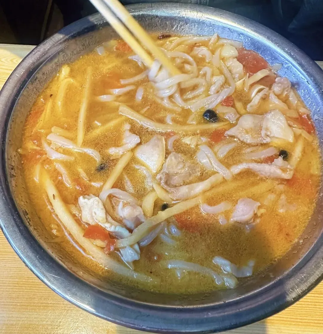它的汤不够浓郁,酸笋的劲也没那么冲,整体就是个“温和版”的老友粉。