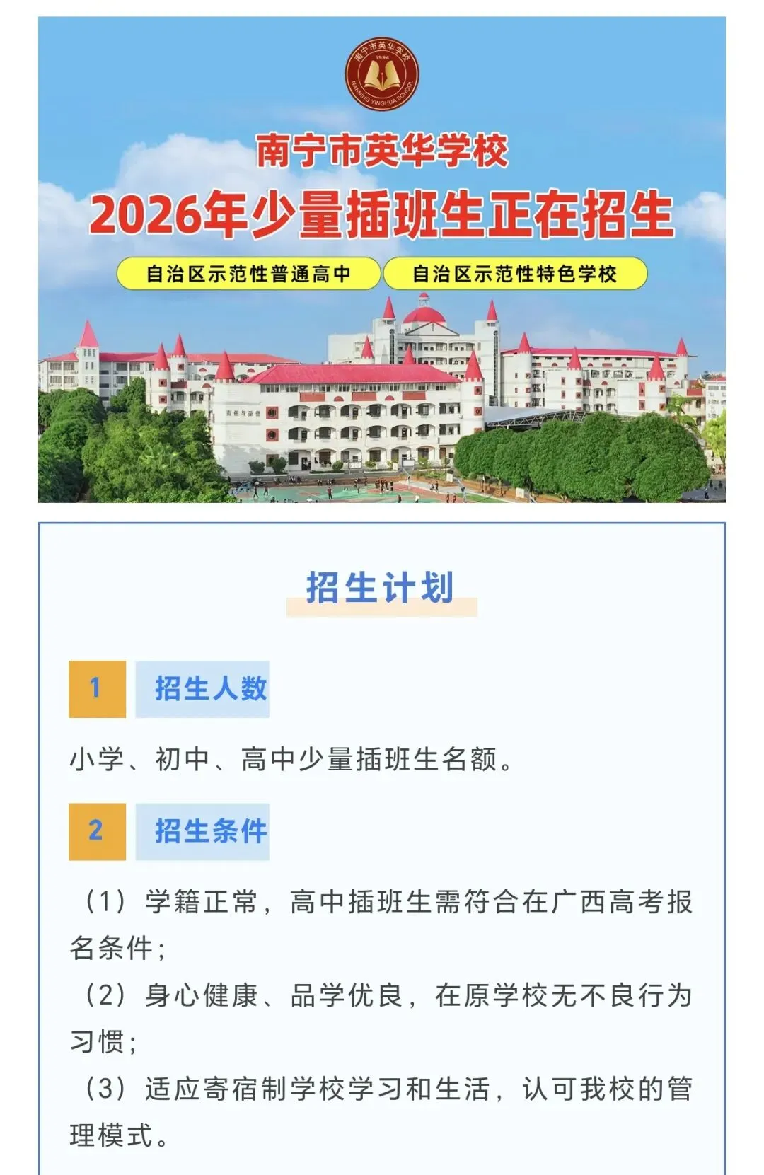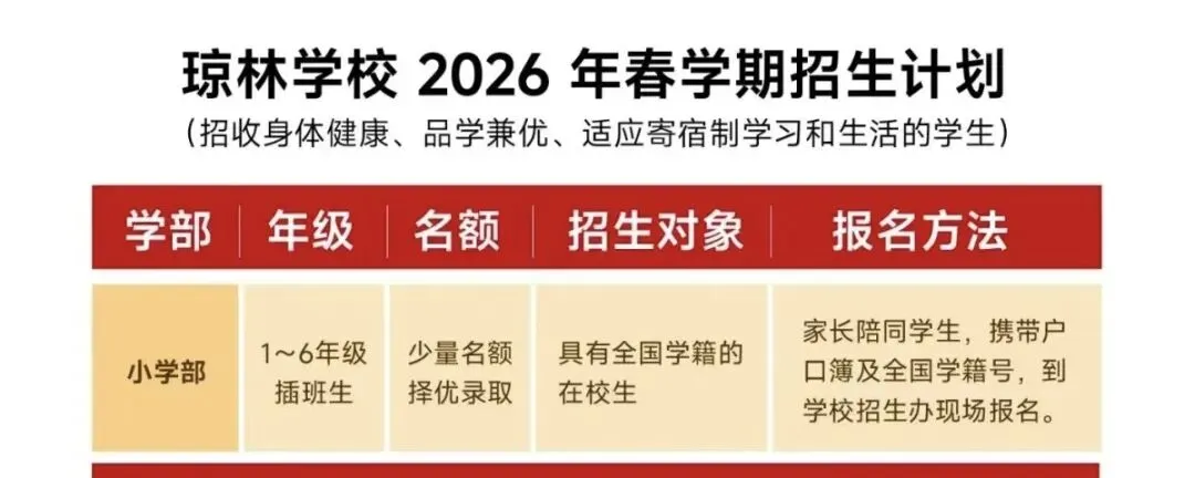 近期,南宁北附实验学校、琼林学校相继发布2026年春季学期插班生招生公告,小编给大家汇总并分析如下: