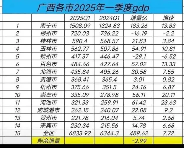 广西柳州2025年GDP增速6.2%,重回3000亿元梯队,工业底子厚,是广西的工业老大哥。南宁2025年GDP增速4.7%,低于全区平均线5.1%,固定资产投资还下降了15.2%。这两组数字放在一起,说明一个问题:广西内部的城市格局,并不是铁板一块,是在动态变化的。