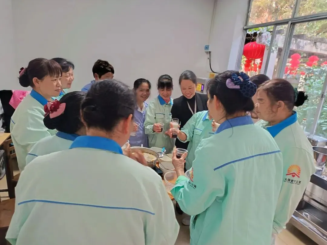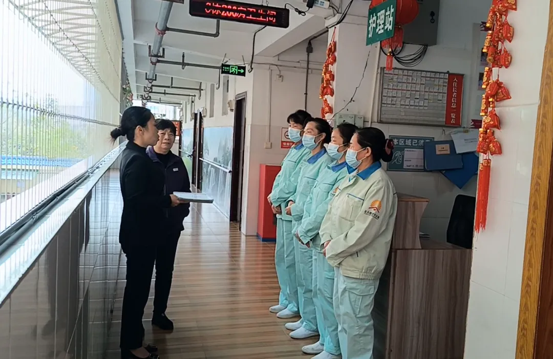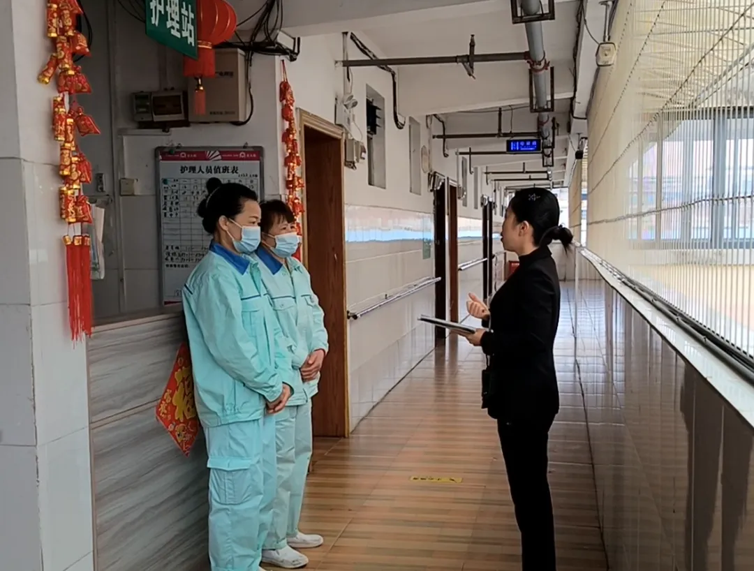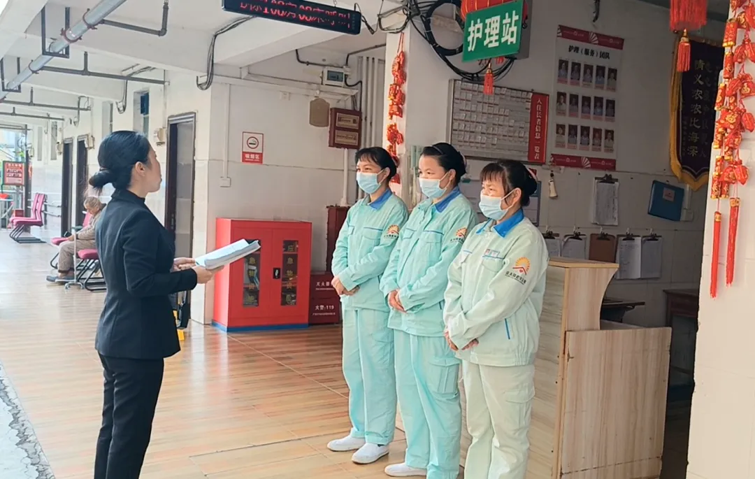 爱老出于心,敬老在于行,于细微处见品质、于无声处见精神是金太阳品牌养老服务文化之精髓,是全体员工热爱养老事业的思想底线,是金太阳人无私奉献精神的崇高境界,在这万家团圆的春节期间,南宁市金太阳老年公寓的各个部门、各个岗位早已是一片爱老敬老服务的蓬勃景象。每日清晨,旨在总结提高服务质量的晨会准时在各个楼层、各岗位召开。副院长罗芳芳带领中层管理人员逐一深入医务室、护理部各楼层、厨房、后勤等部门,指导和把控晨会的有序进行,她逐一总结昨日各项工作情况,从长者健康监测到护理细节,从膳食搭配到安全保障,一一梳理、细致点评;随后详细部署当日重点工作,强调节日期间