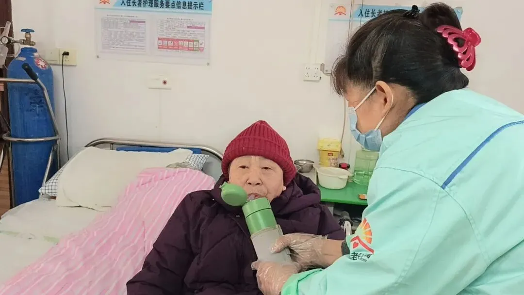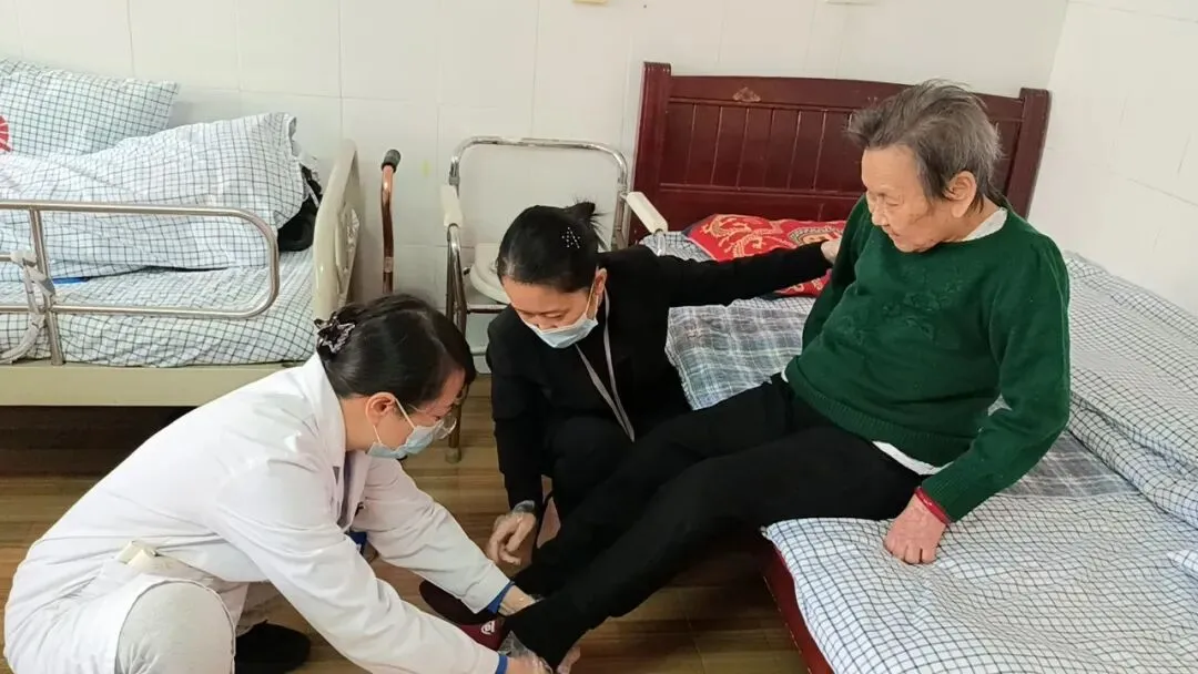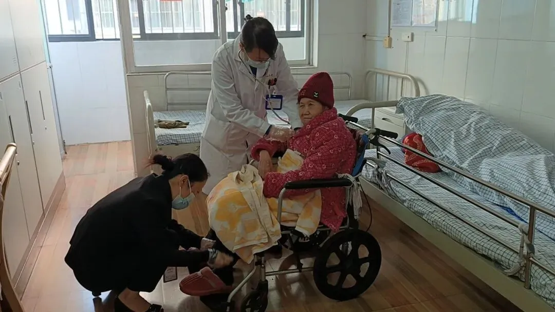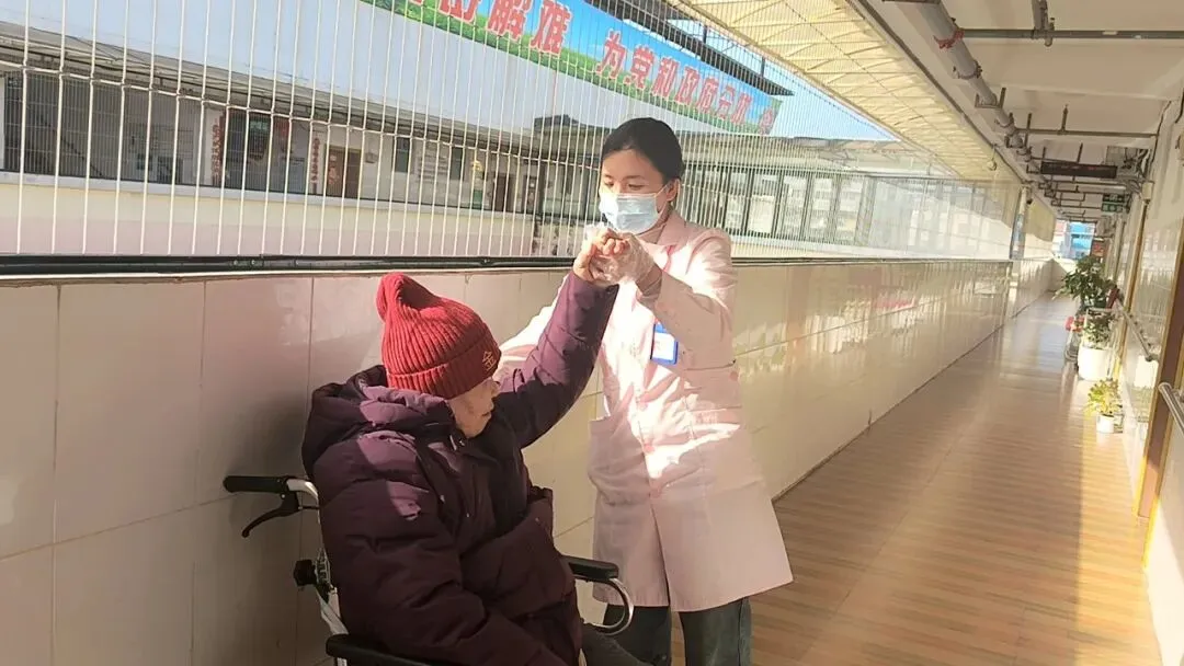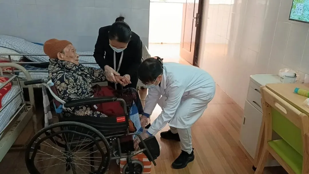 晨会刚刚结束,罗副院长随即带队开始每日必须进行的查房。她带领医护人员逐一走进长者房间,俯身床前,仔细询问每位长者的身体状况,认真检查用药记录、悉心叮嘱护理注意事项。每到一处,她都亲切地与长者交谈:“今天感觉怎么样?”“过年开心吗?”一句句家长里短的问候,传递着家人般的关怀。查房不仅是工作的例行,更是温情的传递,让长者在节日里感受到稳稳的安心与陪伴。