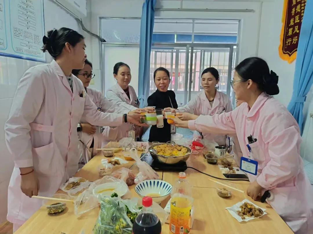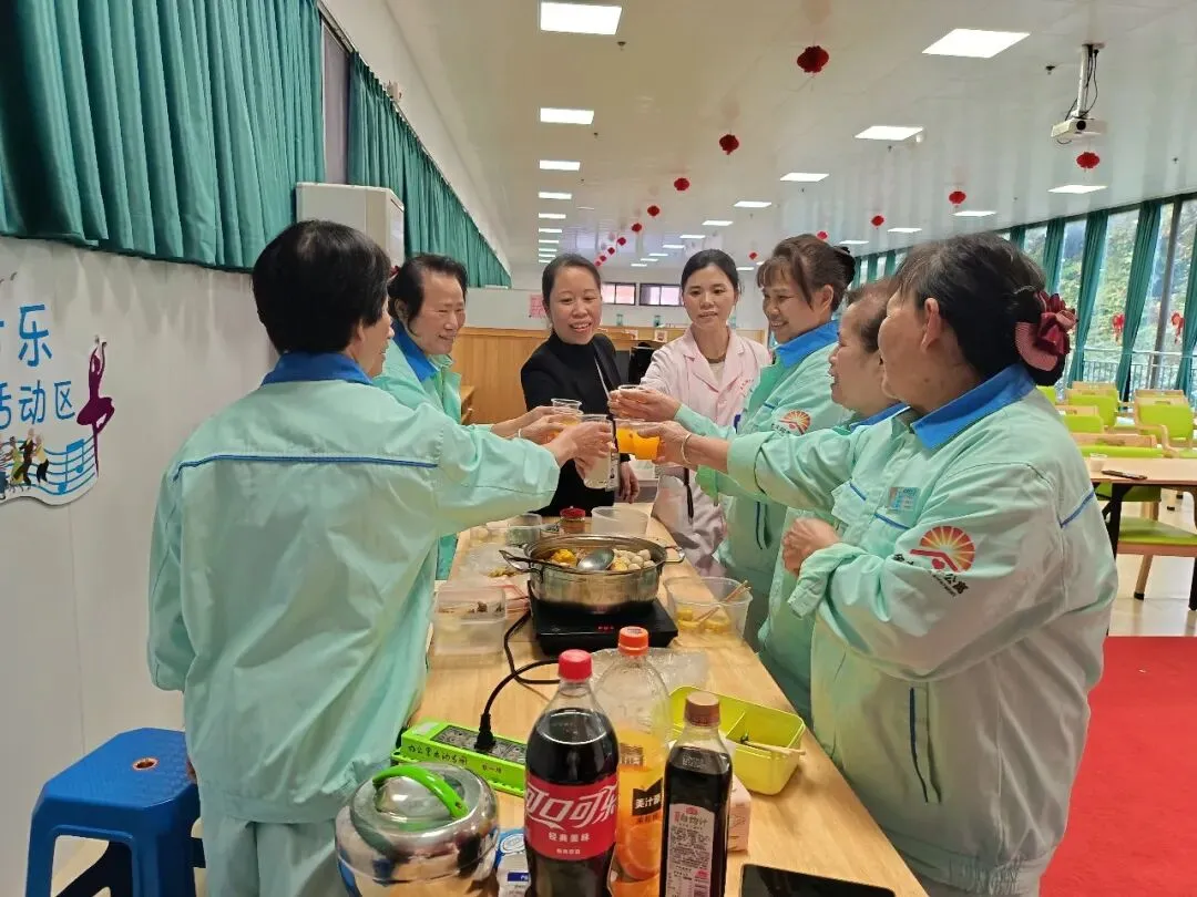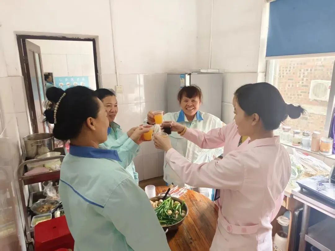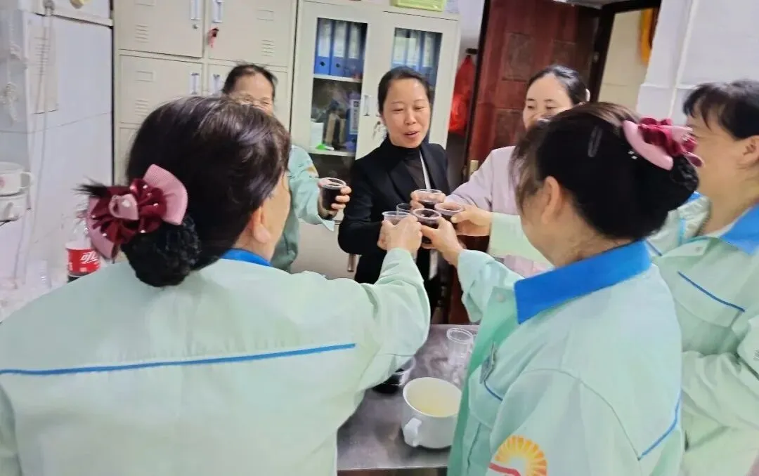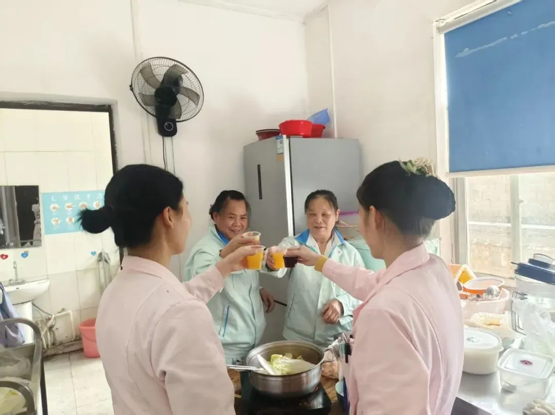 暮色降临,忙碌的一天终于告一段落,员工们迎来了难得的晚餐欢聚时刻。罗副院长带领中层管理人员逐一走到每一位正在用餐的员工身边,代表公寓向他们致以诚挚的慰问与感谢。“过年期间辛苦了!”“家里都安顿好了吗?”“谢谢你们的坚守!”一句句朴实的话语,一份份真诚的关怀,让员工们倍感温暖。护理员李大姐感动地说:“虽然没能回家过年,但在金太阳这个大家庭里,一样感受到了团圆和温暖。”这一刻,食堂里弥漫的不仅是饭菜的香气,更是浓浓的情谊。