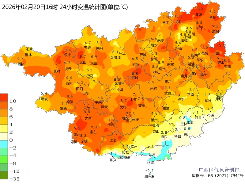 相关数据显示,2月19日上午8时至20日上午8时,桂林、柳州、河池、百色等市阴天,有小雨、局地中雨,其他地区阴天到多云,局地有小雨。