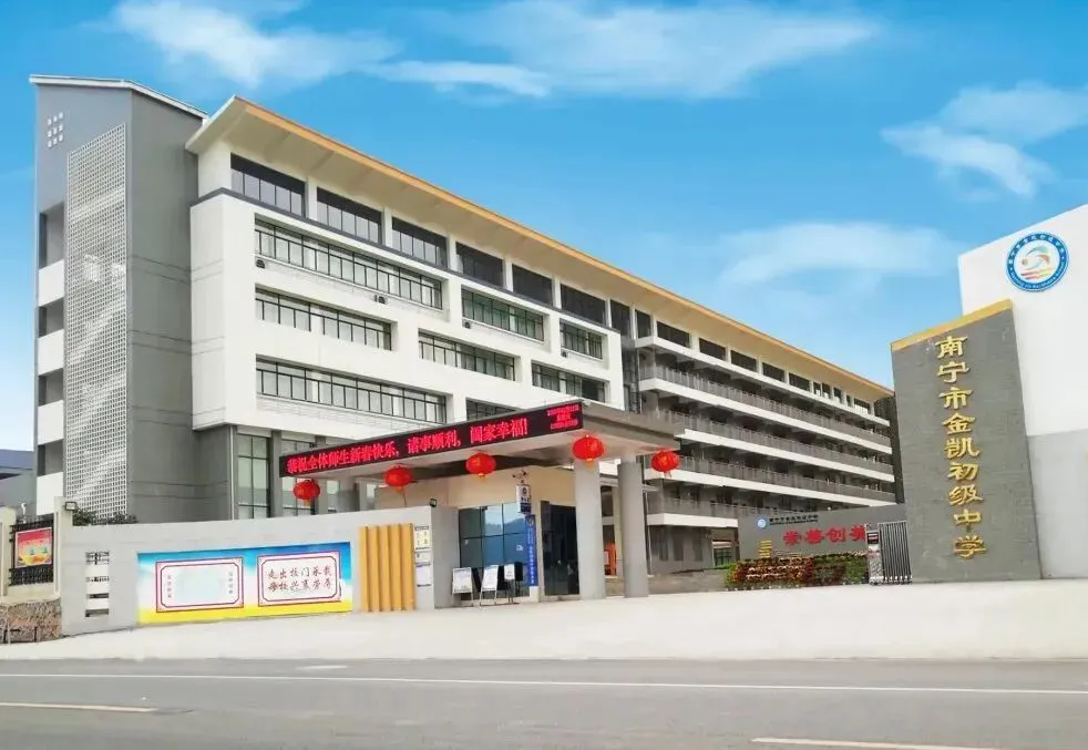 南宁市金凯初级中学建于2016年12月,2017年8月正式招生启用,是经开区管委会重点打造的一所高起点、高标准、高品质的数字化公办寄宿制初级中学。学校占地面积约50亩,地理位置优越,交通便利,位于那洪大道与国凯三支路交汇处,地处经开区政治、经济和文化中心。