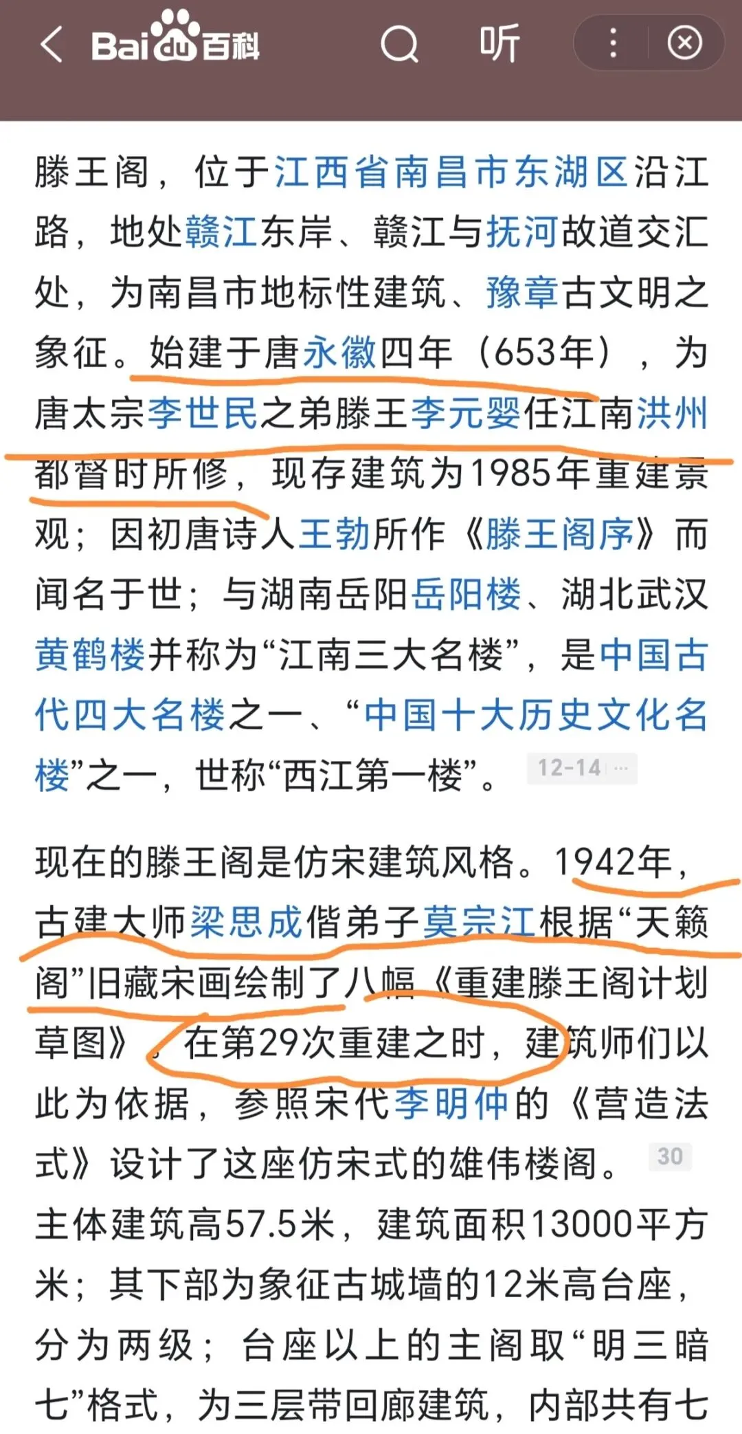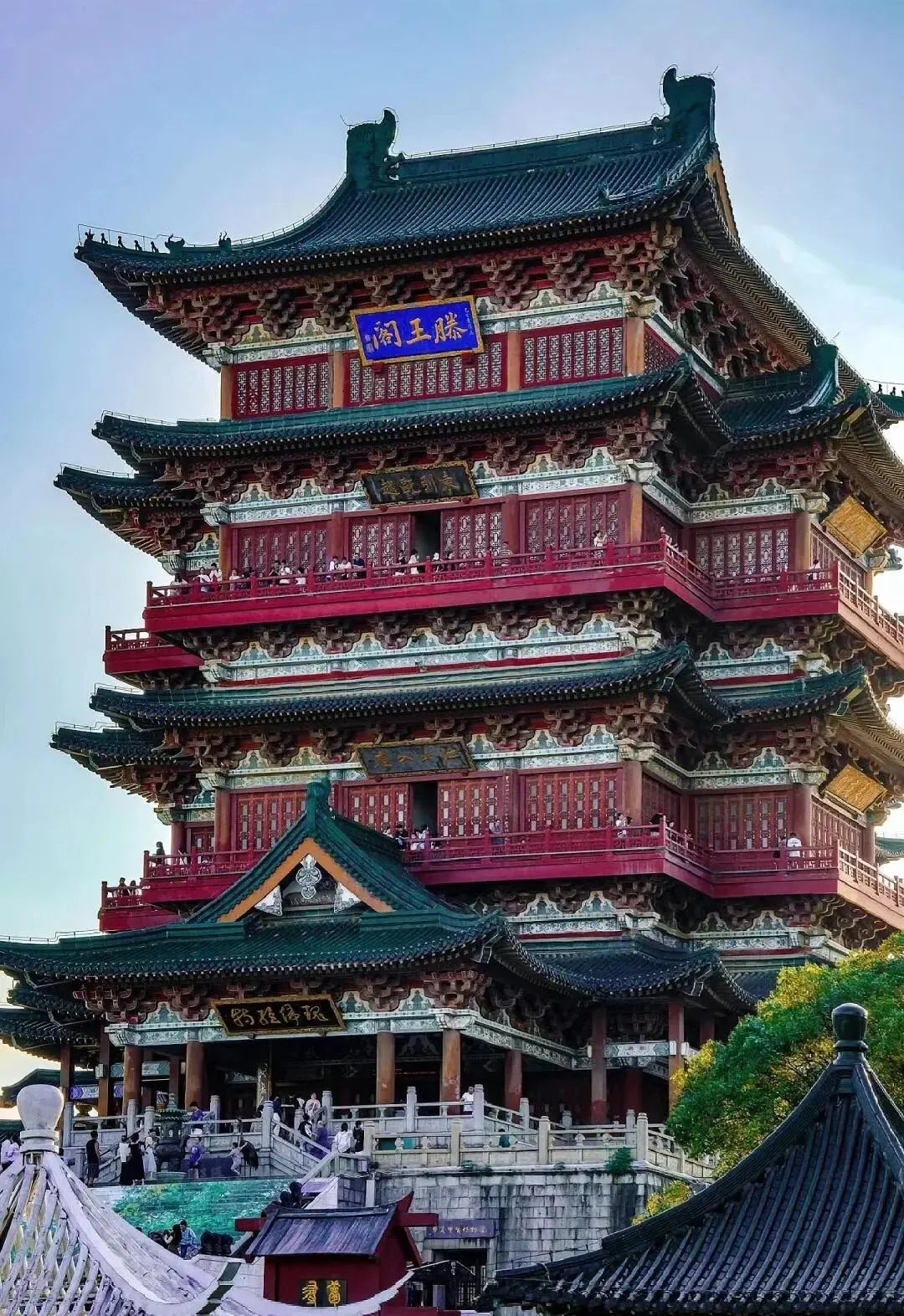 名震天下的滕王阁楼重建了29次,是1942年古建大师梁思成偕弟子仿宋建筑风格而成。现存建筑为1985年重建。