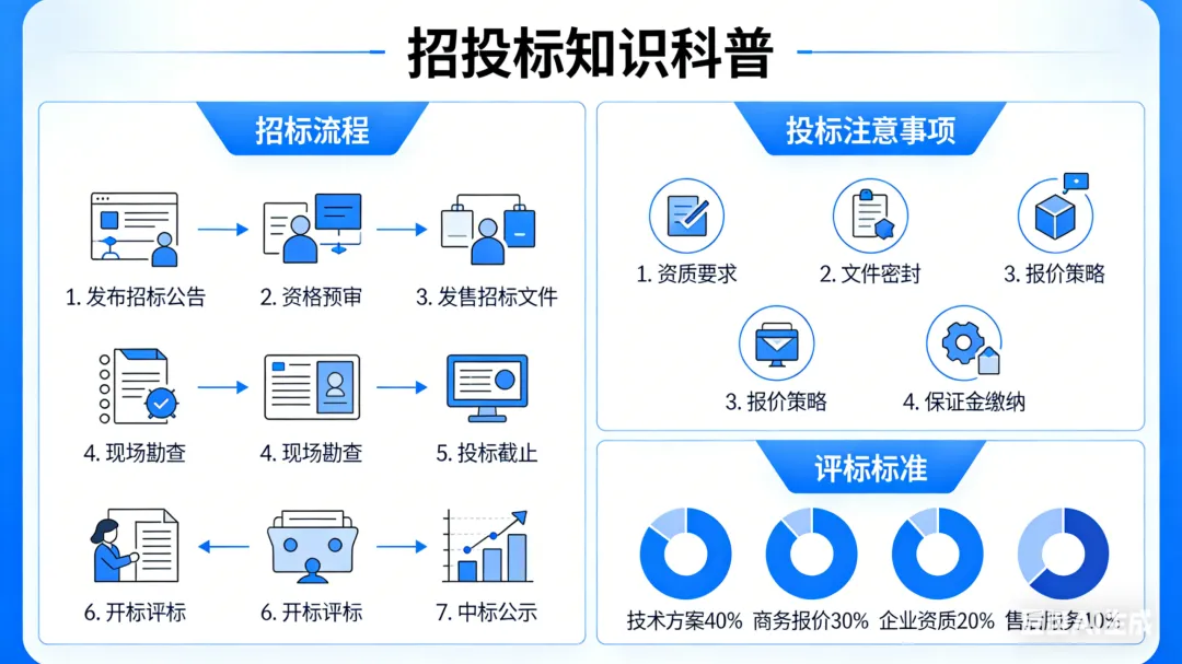 标书编制不专业:缺乏对标书编制规范和评分细则的了解,导致标书内容不完整或格式不符合要求。信息获取不及时:未能实时获取招标信息,错过最佳投标时机。缺乏针对性设计:标书内容泛泛而谈,缺乏对项目需求的精准把握,难以打动评审专家。废标风险高:标书中存在条款漏填、表述模糊等问题,直接导致废标。