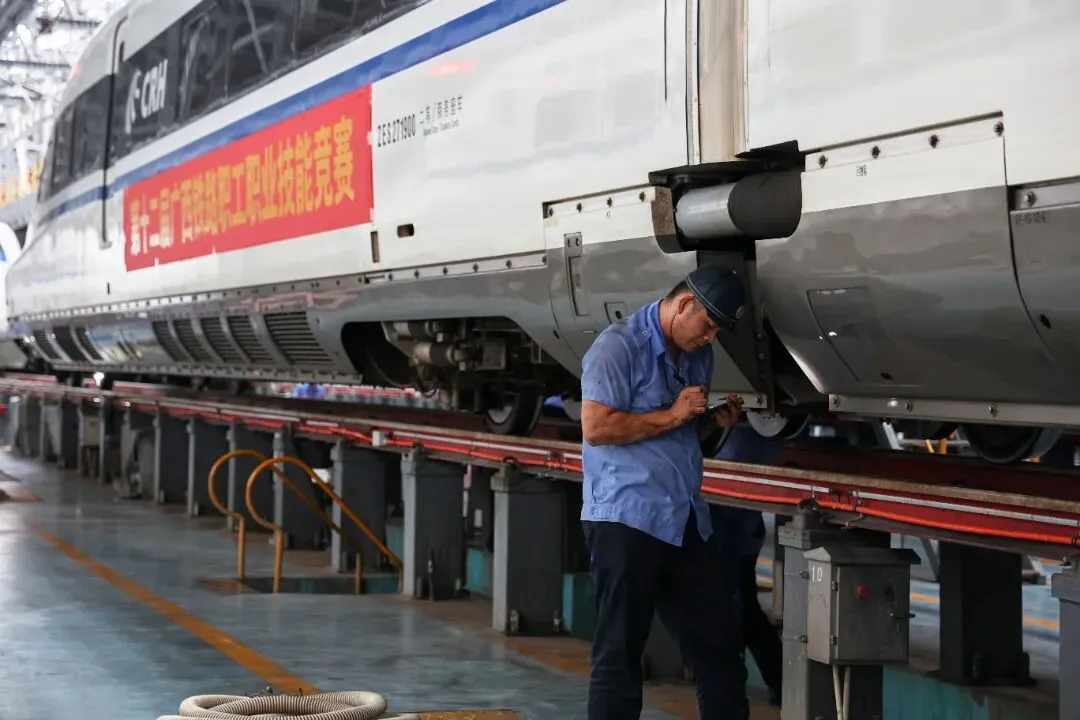 蓝翊允是南宁动车所的一名动车质检员,日常工作中不仅需要验收动车组检修质量,还要对班组处理过的故障进行复核,并对动车组整体情况进行检查。