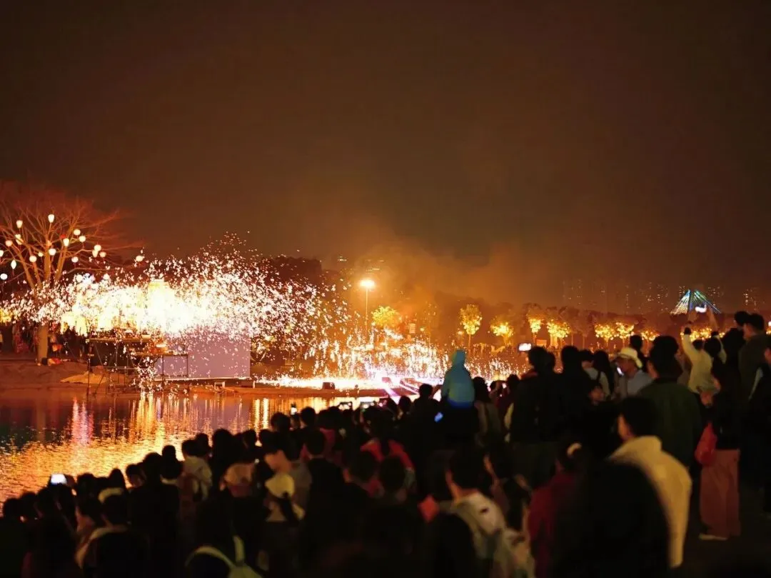 多处场景还有打铁花、火艺秀、水上飞天舞狮、无人机编队表演等精彩演艺。