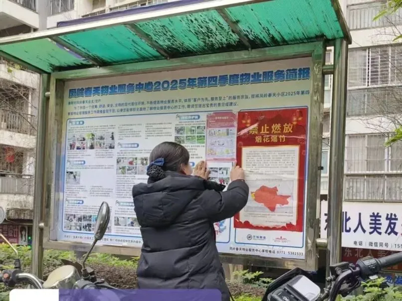 通过在园区、楼栋公告栏张贴宣传页,业主群推送安全提醒,管家一对一告知,以及公众号发布科普推文等方式,深入开展烟花爆竹禁燃限放宣传引导工作。