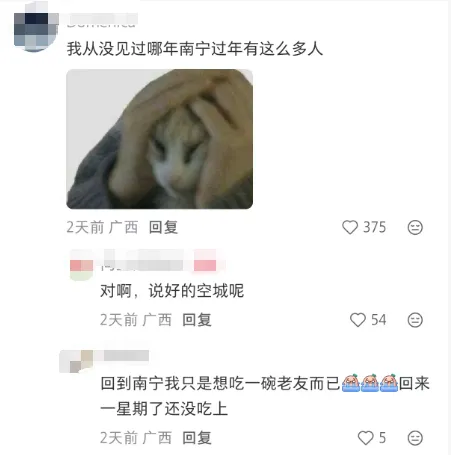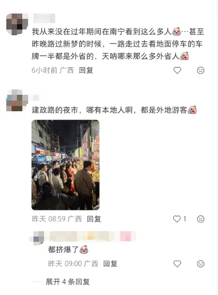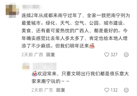 我打开社交平台,关于“春节南宁外地人多”的帖子底下,评论区特别热闹。