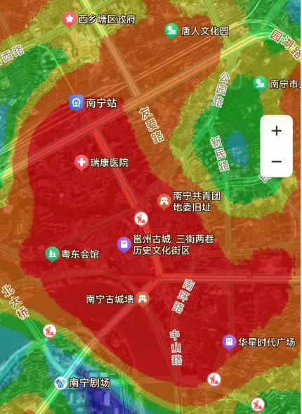 ▲2月22日晚,邕州古城周边热力图