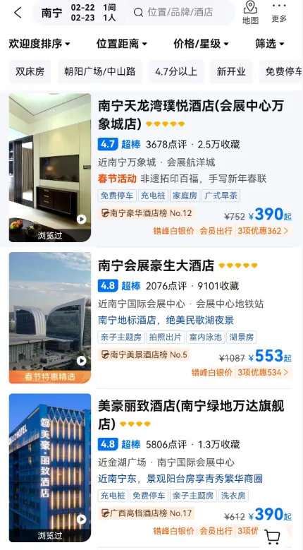 相比一些热门旅游城市,今年春节,南宁酒店住宿性价比拉满。