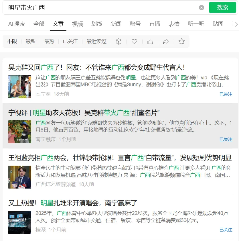 明星效应带来的曝光量,让南宁获得不少流量。