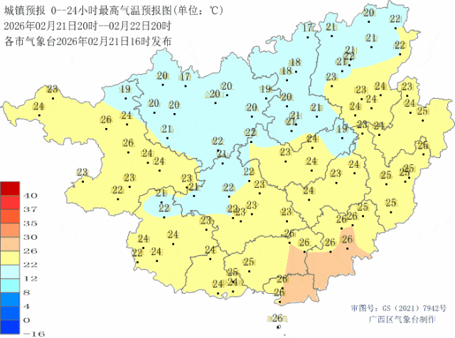 在暖阳的照射下,2月20日,广西大部地区转为多云间晴的天气,升温步伐明显加快,全区大部最高气温升至20~25℃。未来几天,全区大部气温总体起伏不大。其中桂西、桂南大部最高气温基本都有22~25℃,26~29℃的阵容也将有所扩大。