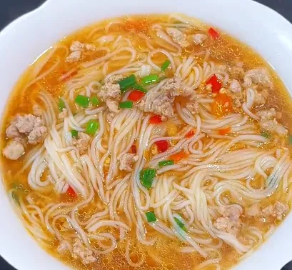 特色推荐:罗秀米粉这粉讲究个“韧”。做法不复杂,但费功夫。干粉先用冷水泡软,再下锅滚水里烫几十秒,捞起来沥干。码上切好的叉烧、炸得酥脆的黄豆,淋上一勺秘制的卤水,最后撒点葱花。拌匀了吃,粉皮爽滑劲道,卤汁咸香挂味,嗦一口,那股子米香在嘴里久久不散。