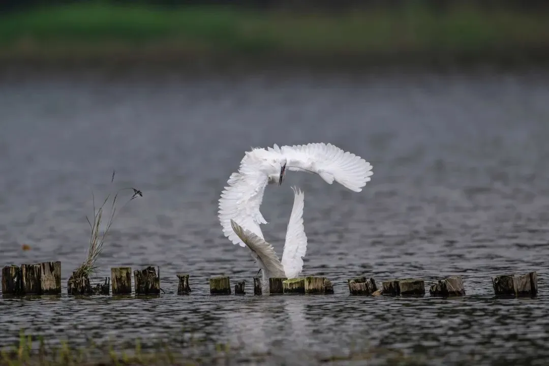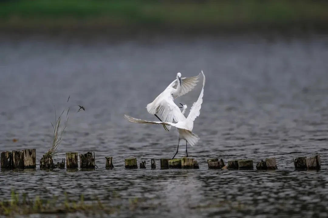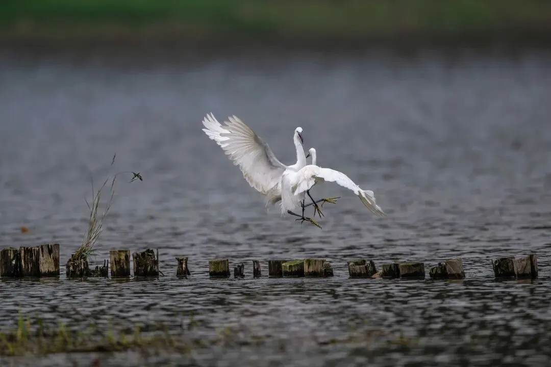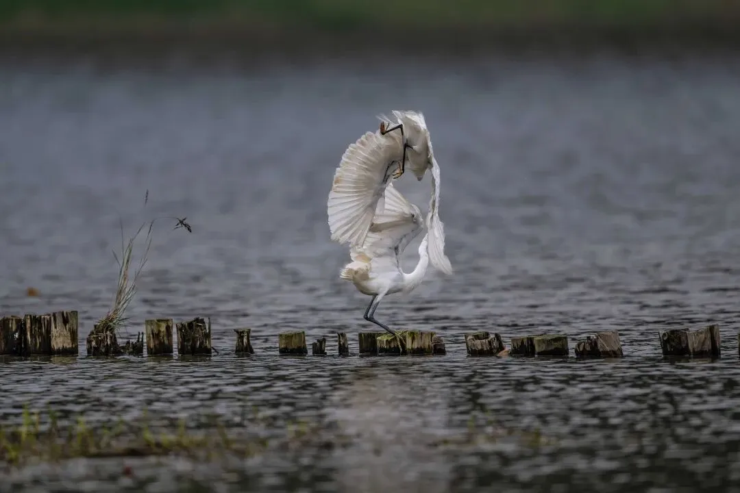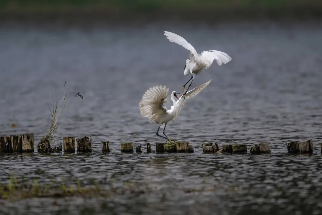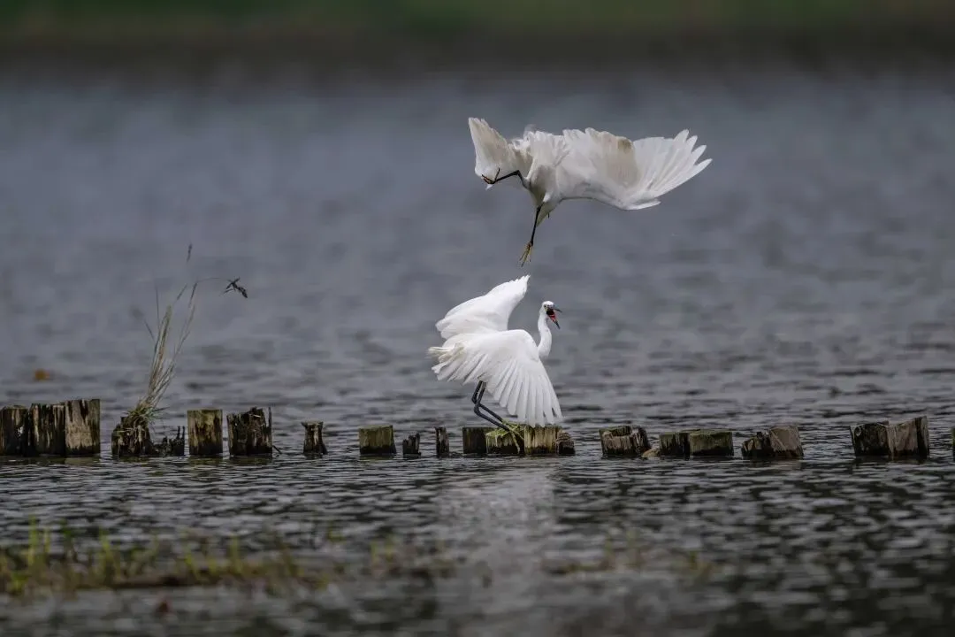 从拍摄的照片中可以看到,白鹭的打斗动作充满了力量与美感。