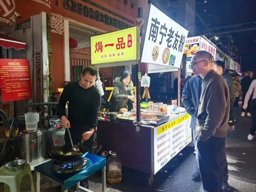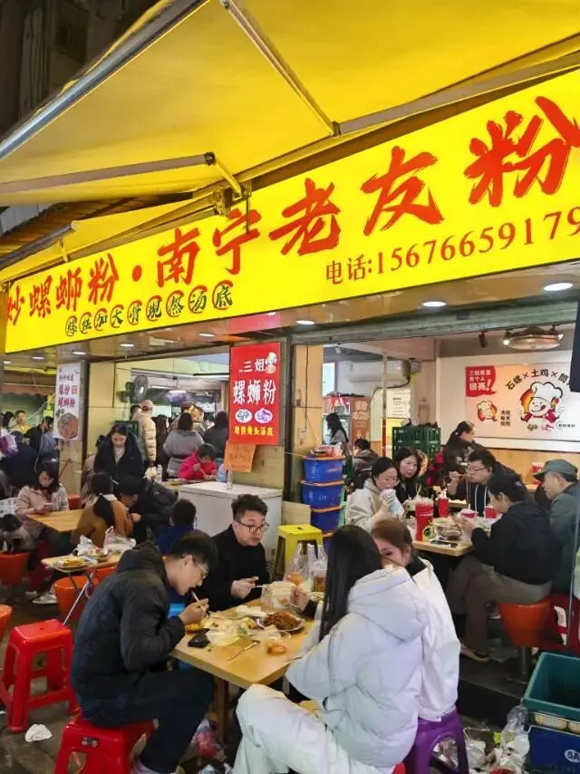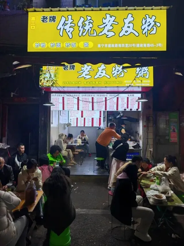 回头再看,整条街的灯还亮着,人还挤着,锅气还冒着。那些从北方来的游客,和本地亮着灯的店,在这条窄巷里挤挤挨挨,过了一个热热闹闹、热气腾腾的欢乐中国年。📍建政路(近园湖路口)🕒晚上7点后陆续出摊,越夜越热闹👍柳州双姐螺蛳、喜三口老友粉(手写号牌值得等)、桂筱葵鸭脚、古记卷筒粉、何记老牌牛杂、偶遇的卷粉摊 -END- 邀请您一键关注