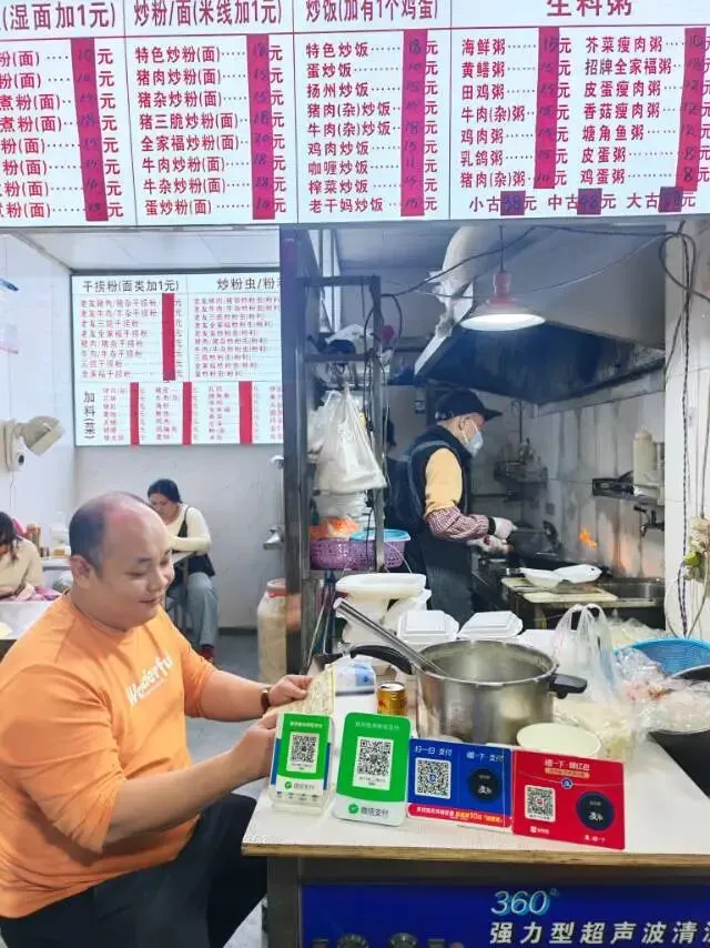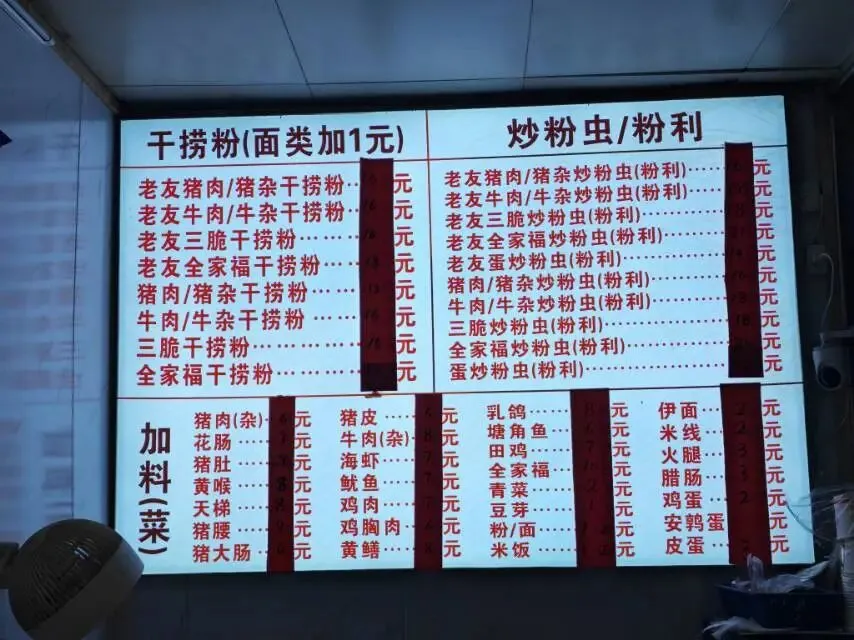往另一头走,看见“喜三口”老友粉摊。老板是个笑嘻嘻的微胖的男人。没有电子叫号,就靠一个发黄的练习本——谁来点单,他就在本子上记:几号、吃什么、加不加辣。一笔一划,写得认真。