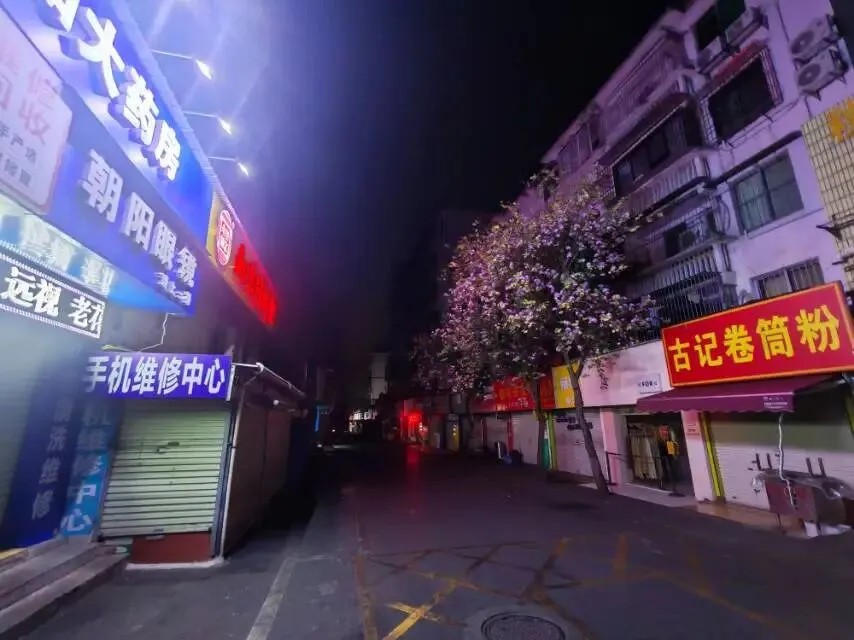 今年春节在哥嫂家过的年,住在建政路附近。大年初一的晚上,从青秀山观灯展回来,我拐进了这个丁字路口。