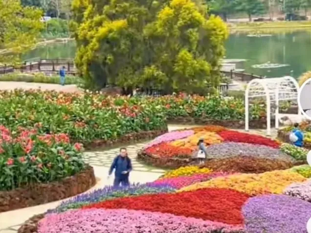 你看那花坛,红的似火,粉的如霞,紫的像梦,黄的若金。它们不再是单一的个体,而是被园艺师精心编织成的彩色地毯,沿着蜿蜒的小径铺展开来。这种大面积的色块碰撞,极具视觉张力,让人忍不住想张开双臂,拥抱这份热烈与生机。