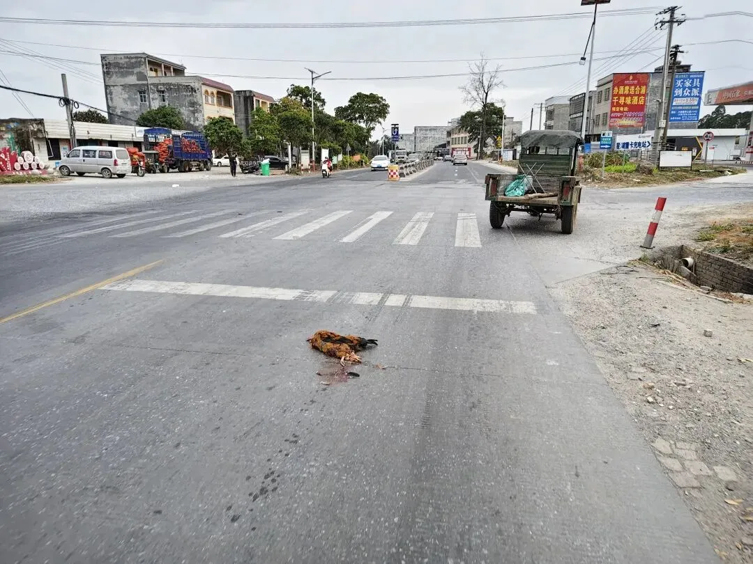 路上我们看到了被车撞到的小鸟、小鸡、小猫、小狗,还有蛇。