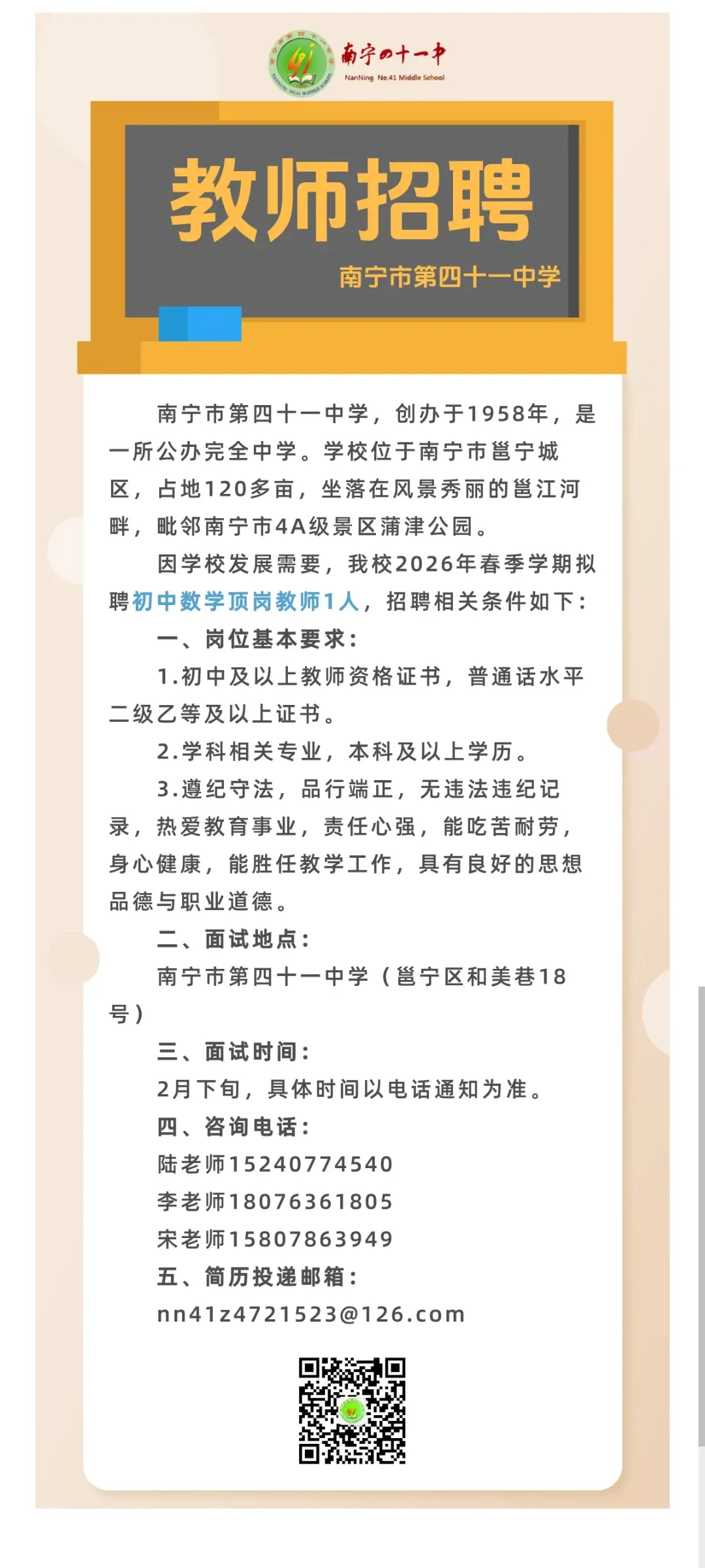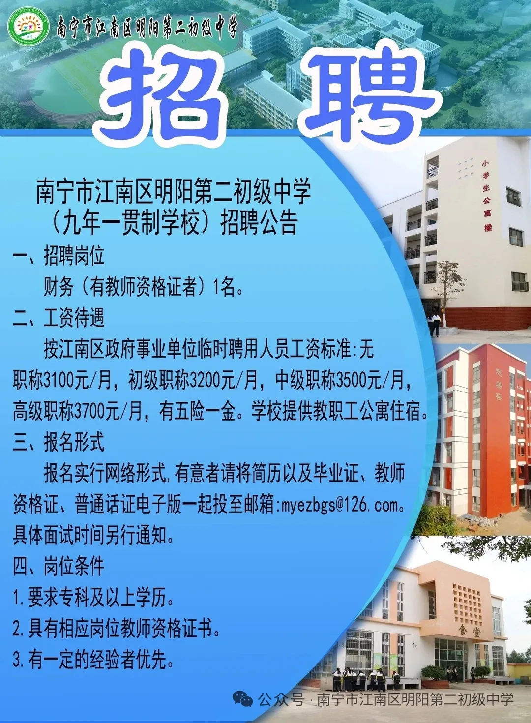 南宁教师招聘:南宁市江南区明阳第二初级中学招聘