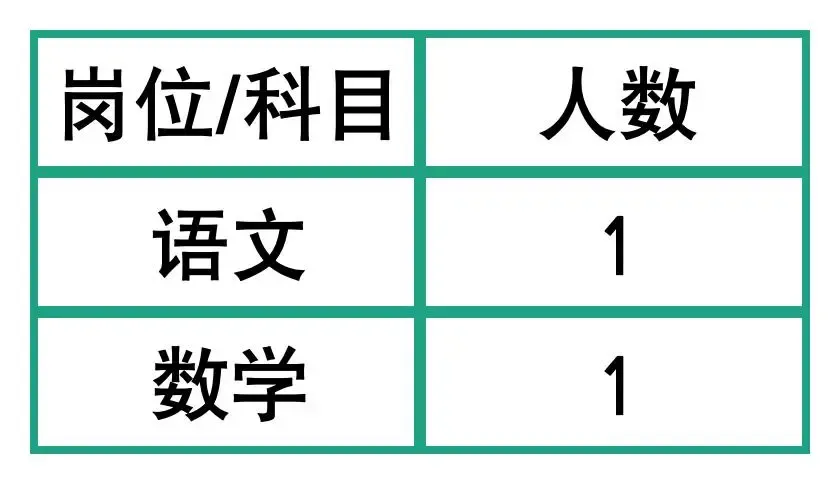 初中语文教师1名、初中数学教师2名、初中生物教师1名、初中体育教师1名