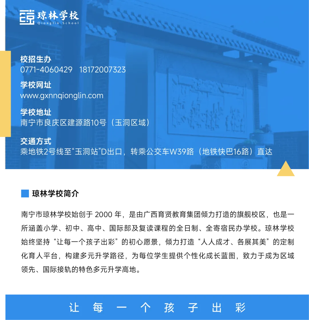自驾/打车:南宁市琼林学校(南宁市良庆区建源路10号)