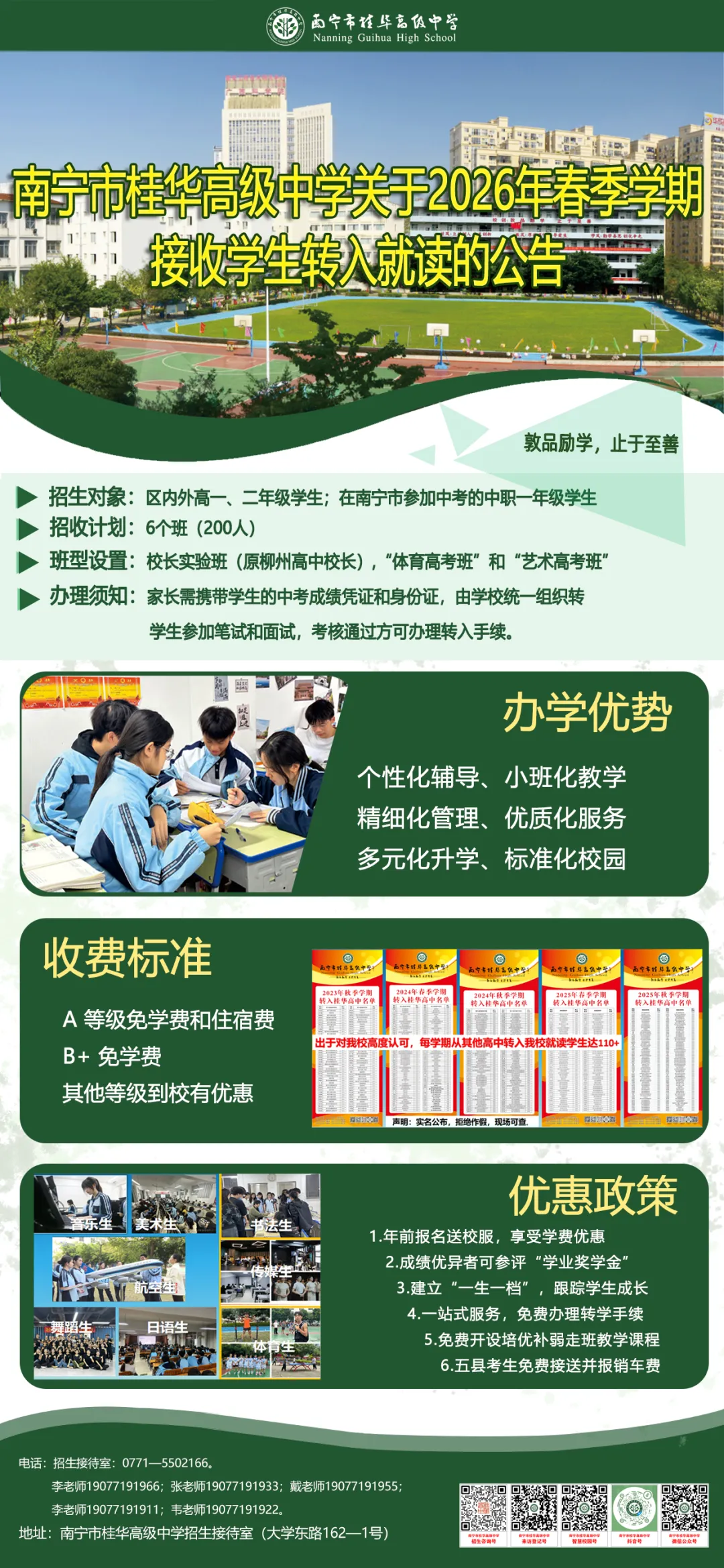 已经成功在我校办理转入就读的学生和家长,近期请务必保持电话畅通,也要注意谨防电信诈骗。转入新生请于2月25日(星期三)下午15:00——17:00前到学校招生接待室找年级主任报到,由年级主任安排相应班主任办理相关手续。