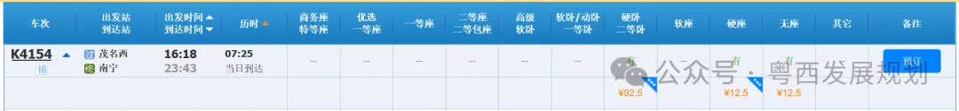 近日,12306售票官网显示,K4154班次列车,广州至茂名西最低10.5元,价格优2折惠至本月底(2月28日)。