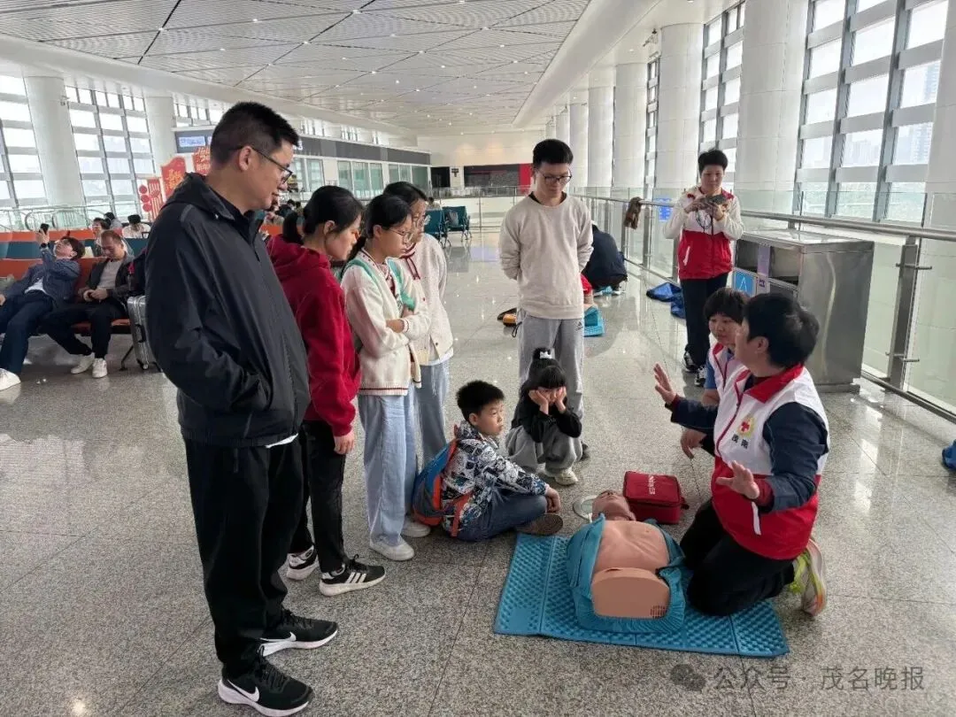 除此之外,2月22日,茂名市茂南区红十字志愿者协会走进茂名站,为旅客开展心肺复苏及除颤仪使用的急救培训,通过“理论+实操”提升应急处置能力。